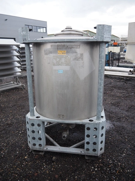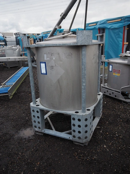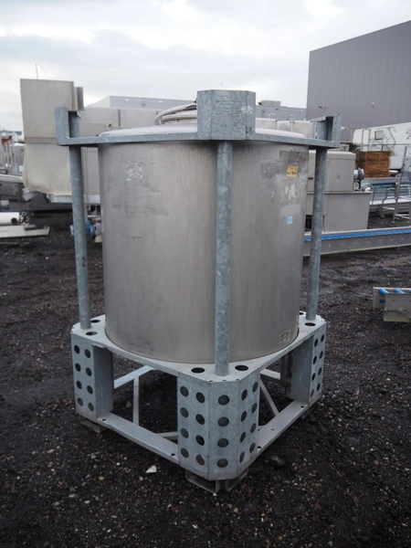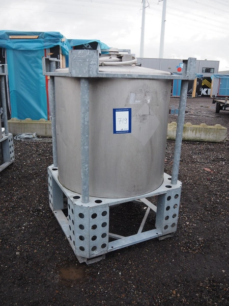 Behälter kg - Bremen s/s tank on steel frame, volume: 1081 liter, dimensions frame: 1150 mm x 1150 mm x 1750.
