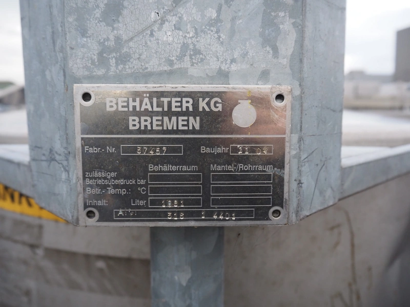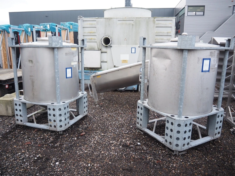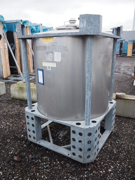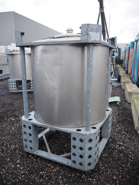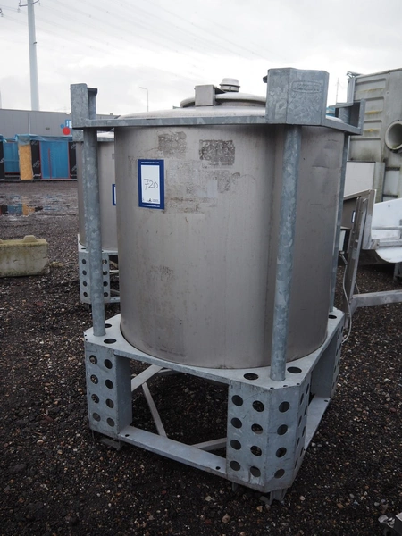 2 Behälter kg - Bremen s/s tanks on steel frames, fabrication number: 37457, year of construction: 11.04, tank dimensions: (2x) Ø 1100 mm x 1400 mm, dimensions frame: (2x) 1150 mm x 1150 mm x 1750.
