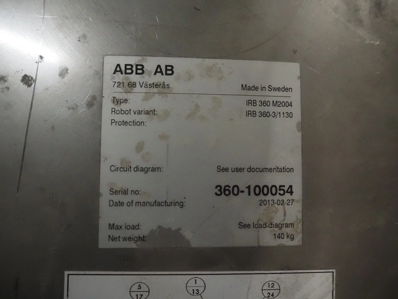 ABB pick and place robot arm, type: IRB 360 M2004, serial number: 360-100055, year of construction: 2013, dimensions: 1000 mm x 900 mm x 500 mm. Including operating system.