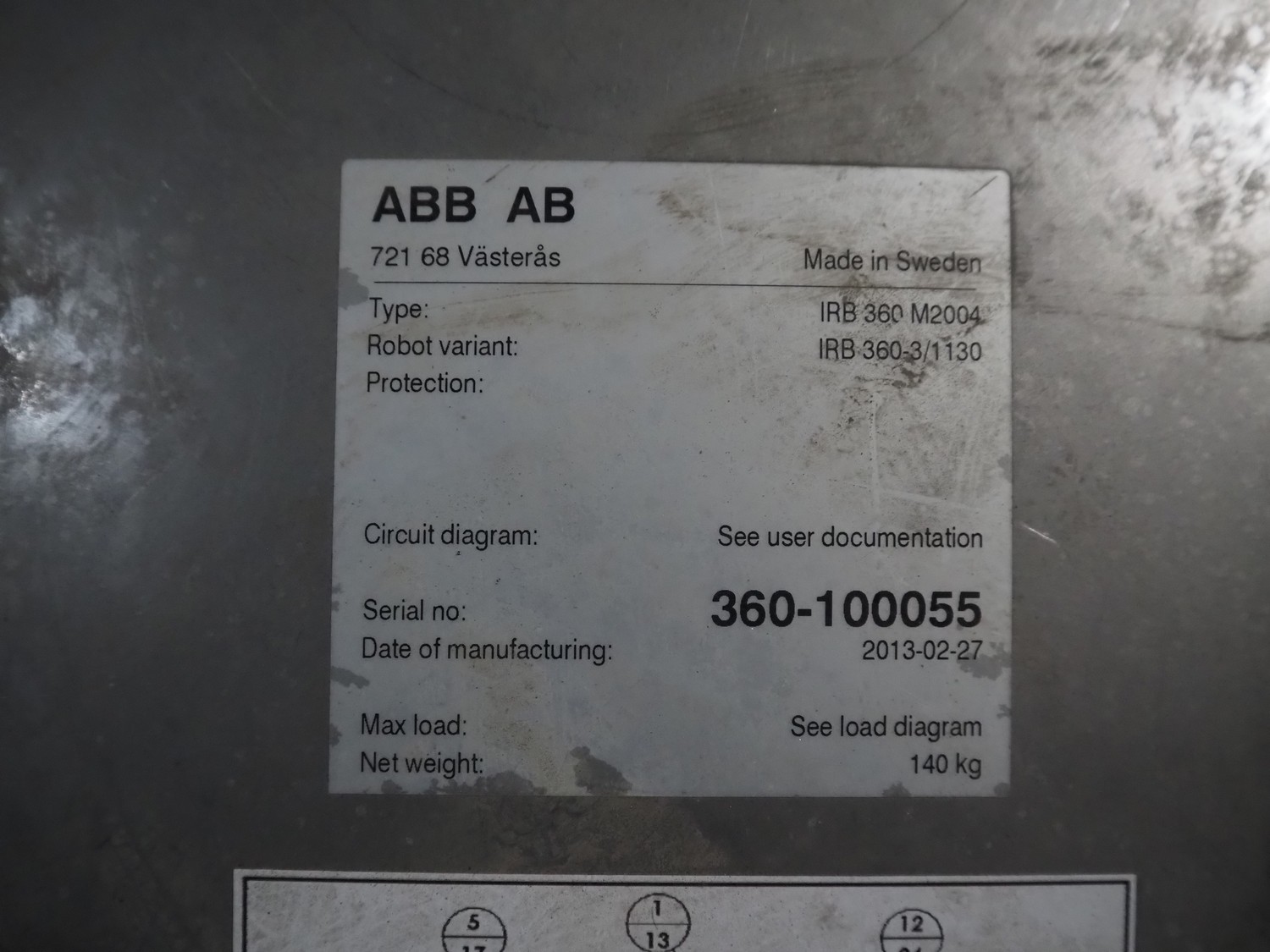 ABB pick and place robot arm, type: IRB 360 M2004, serial number: 360-100055, year of construction: 2013, dimensions: 1000 mm x 900 mm x 500 mm. Including operating system.