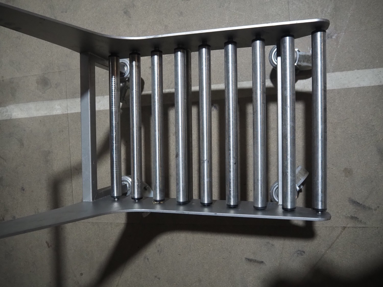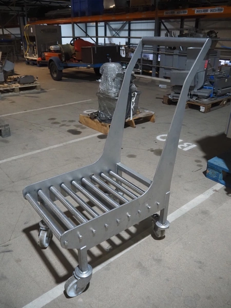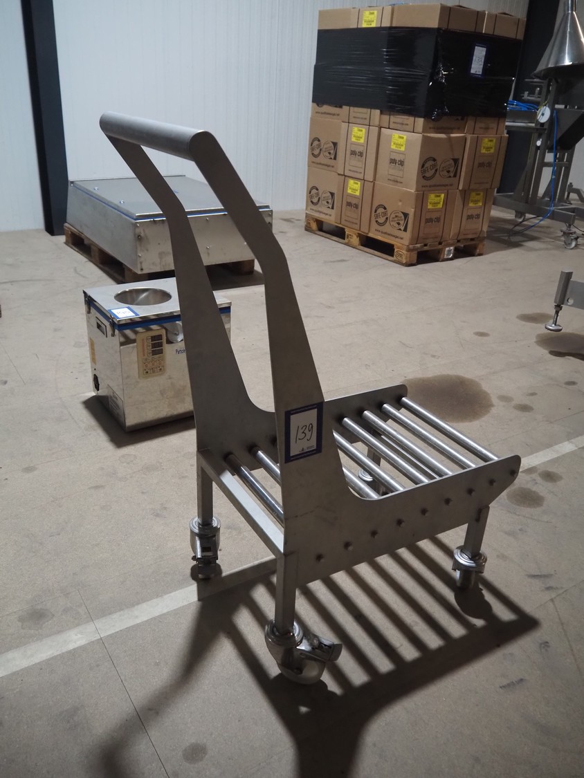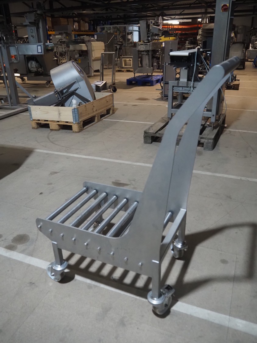 S/s trolley with s/s rollers, roller width: 385 mm, total dimensions: 800 mm x 420 mm x 1060 mm.