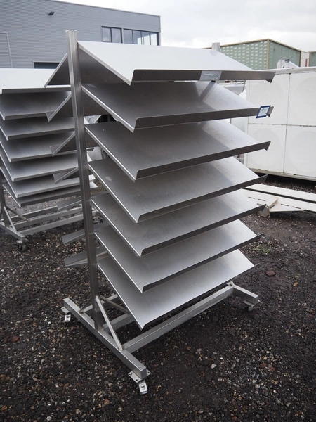 4 s/s trolley, (4x) 14 floors, dimensions floors: (14x) 1000 mm x 500 mm, total dimensions: (4x) 1200 mm x 1000 mm x 1900 mm.