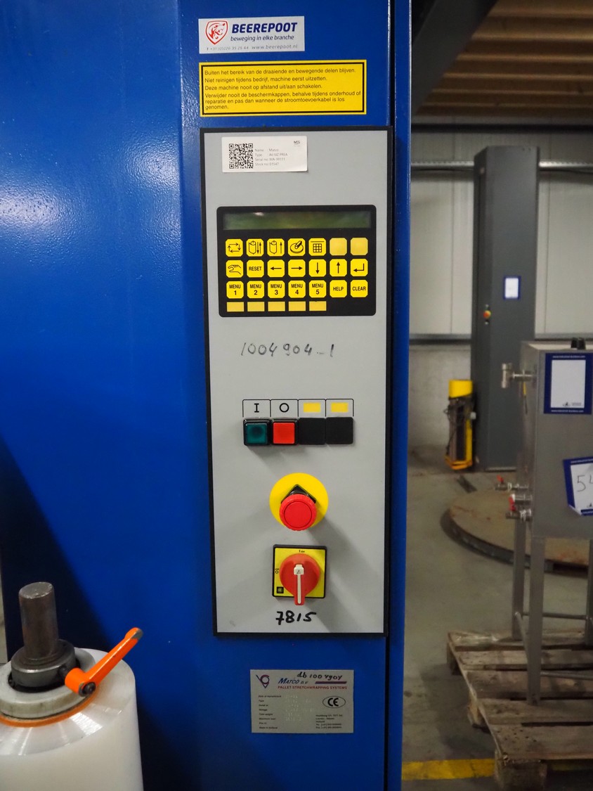 Matco pallet wrapper, type: A618Z PREA, serial number: MA-99111, year of construction: 01/1999, 400 V, 3 Ph, 50 Hz, 765 kg, steel platform, diameter platform: 1750 mm, total dimensions: 3000 mm x 1750 mm x 2600 mm.
