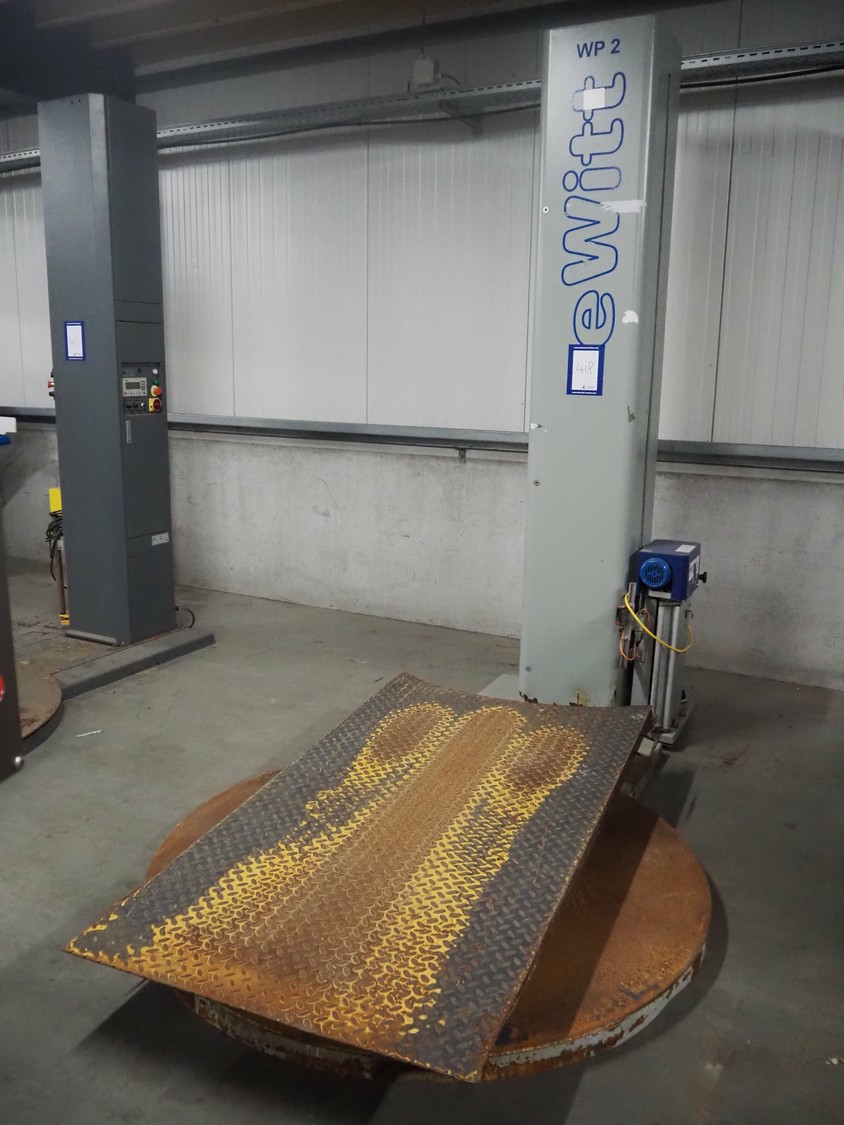 Youngsunpack pallet wrapper, type: MHFG2000B, serial number: E114811, year of construction: 2011, 230 V, 1 Ph, 50 Hz, 1250 W, diameter platform: 1640 mm, total dimensions: 3000 mm x 1650 mm x 2780 mm.