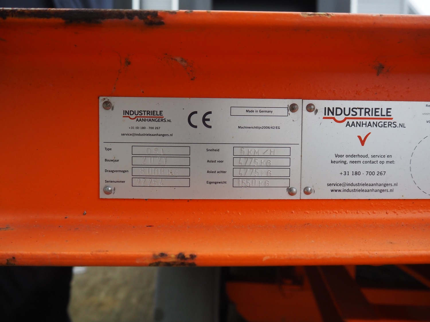 Industriele Aanhangers flatbed trailer, type: DSL, serial number: 22254, year of construction: 2021, capacity: 8000 kg, maximum speed: 6 km/h, dimensions: 6200 mm x 1400 mm x 1670 mm.