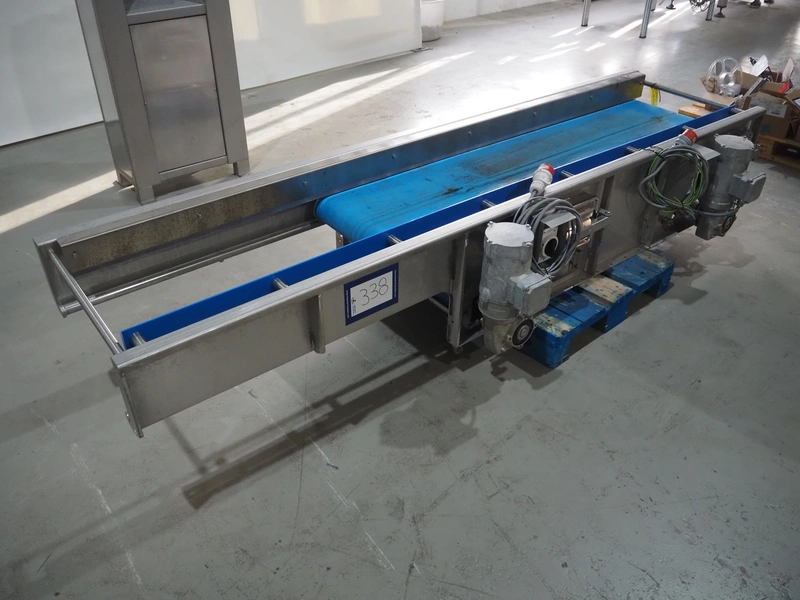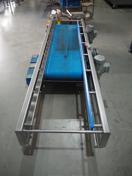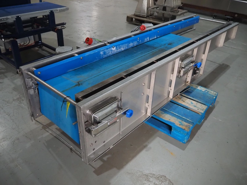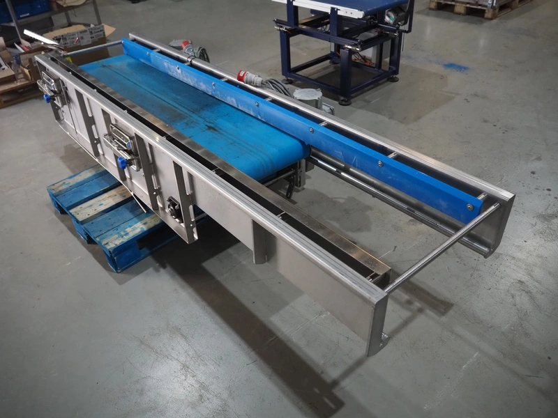 Metaalbewerking JDK shuttle conveyor, number: 2021.9848, year of construction: 2021, plastic belt, belt width: 500 mm, total dimensions: 2900 mm x 1050 mm x 500 mm.