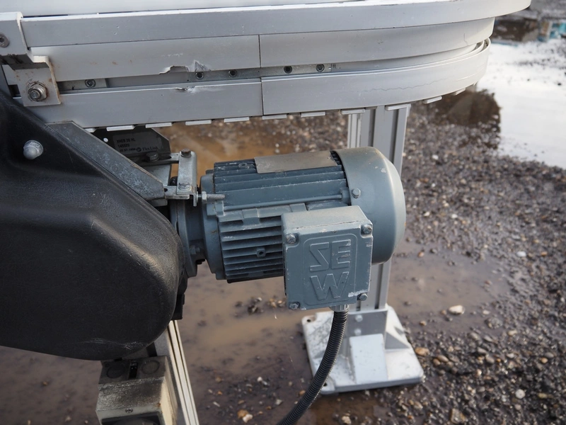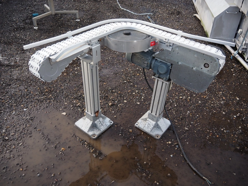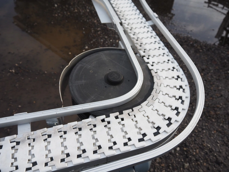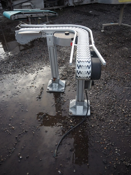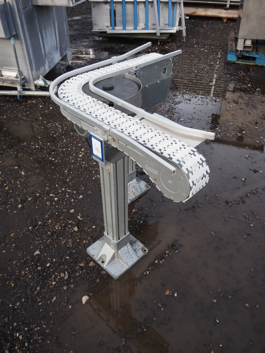 90° curve conveyor, plastic mesh belt, belt width: 100 mm, total dimensions: 1600 mm x 4000 mm x 900 mm.