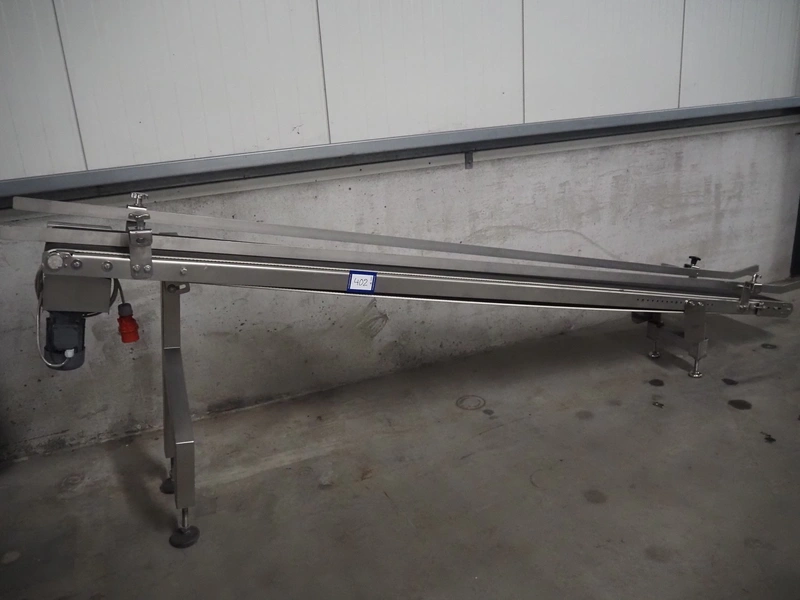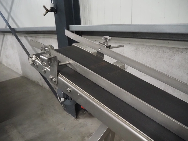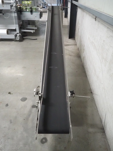 Elevating belt, s/s frame, plastic belt, belt width: 300 mm, elevating height: 1050 mm, total dimensions: 3500 mm x 570 mm x 1170 mm.