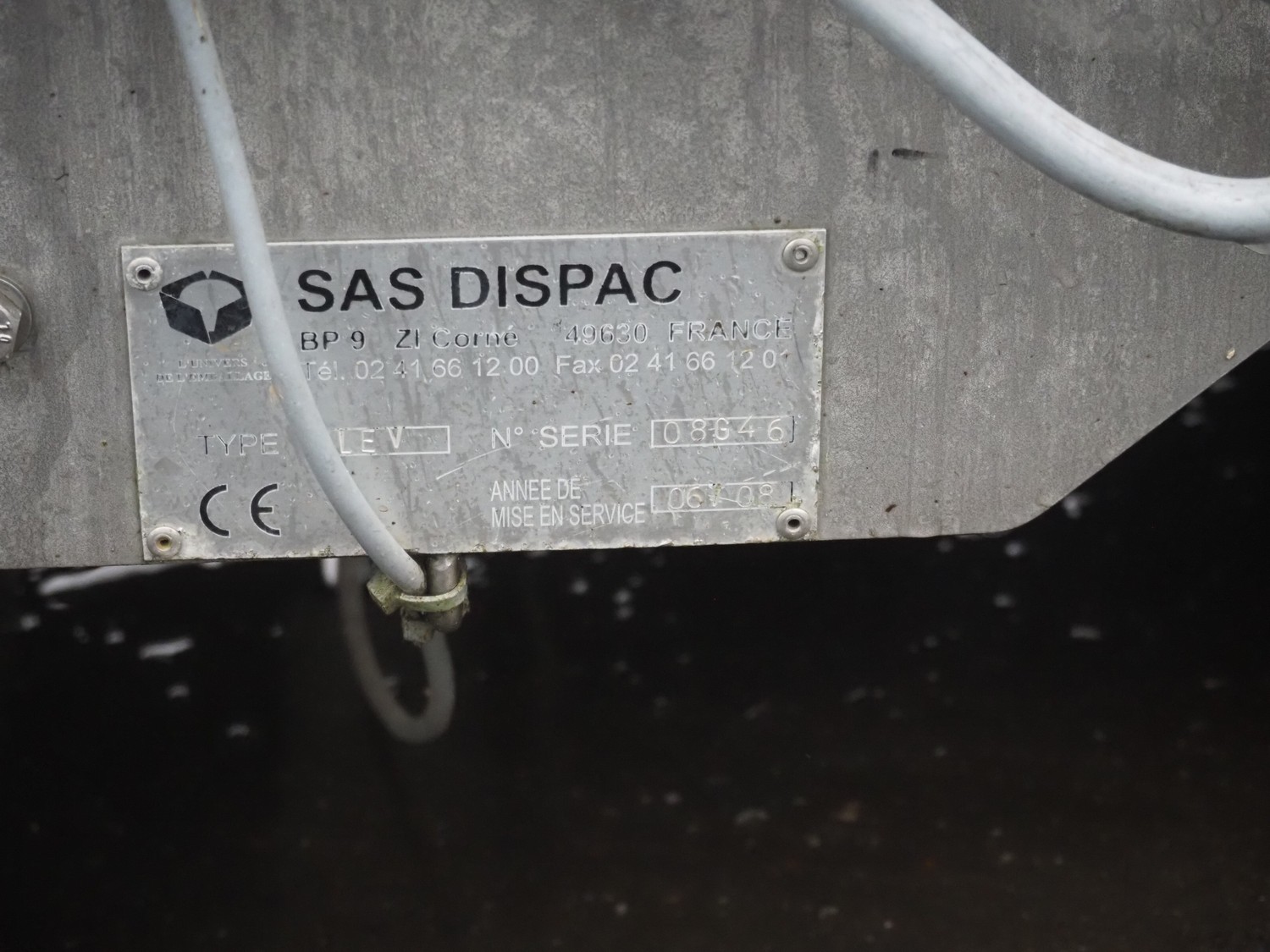 SAS DISPAC elevating belt, type: ELEV, serial number: 08G46, year of construction: 2008, plastic belt, belt width: 600 mm, total dimensions: 6800 mm x 1000 mm x 820 mm.