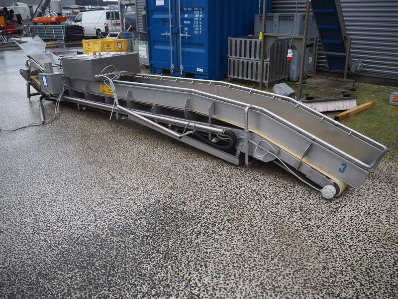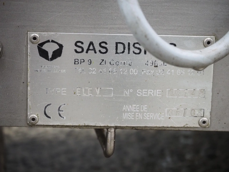 SAS DISPAC elevating belt, type: ELEV, serial number: 08G48, year of construction: 2008, plastic belt, belt width: 600 mm, total dimensions: 6800 mm x 1000 mm x 820 mm.