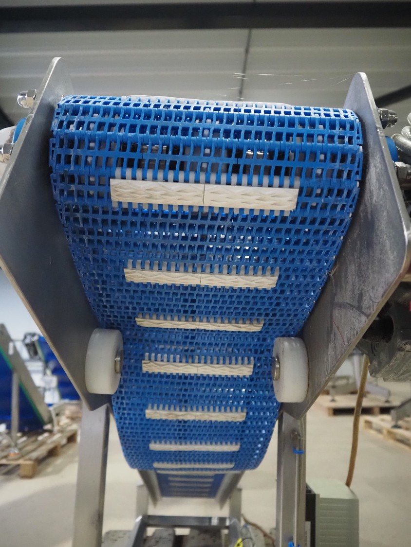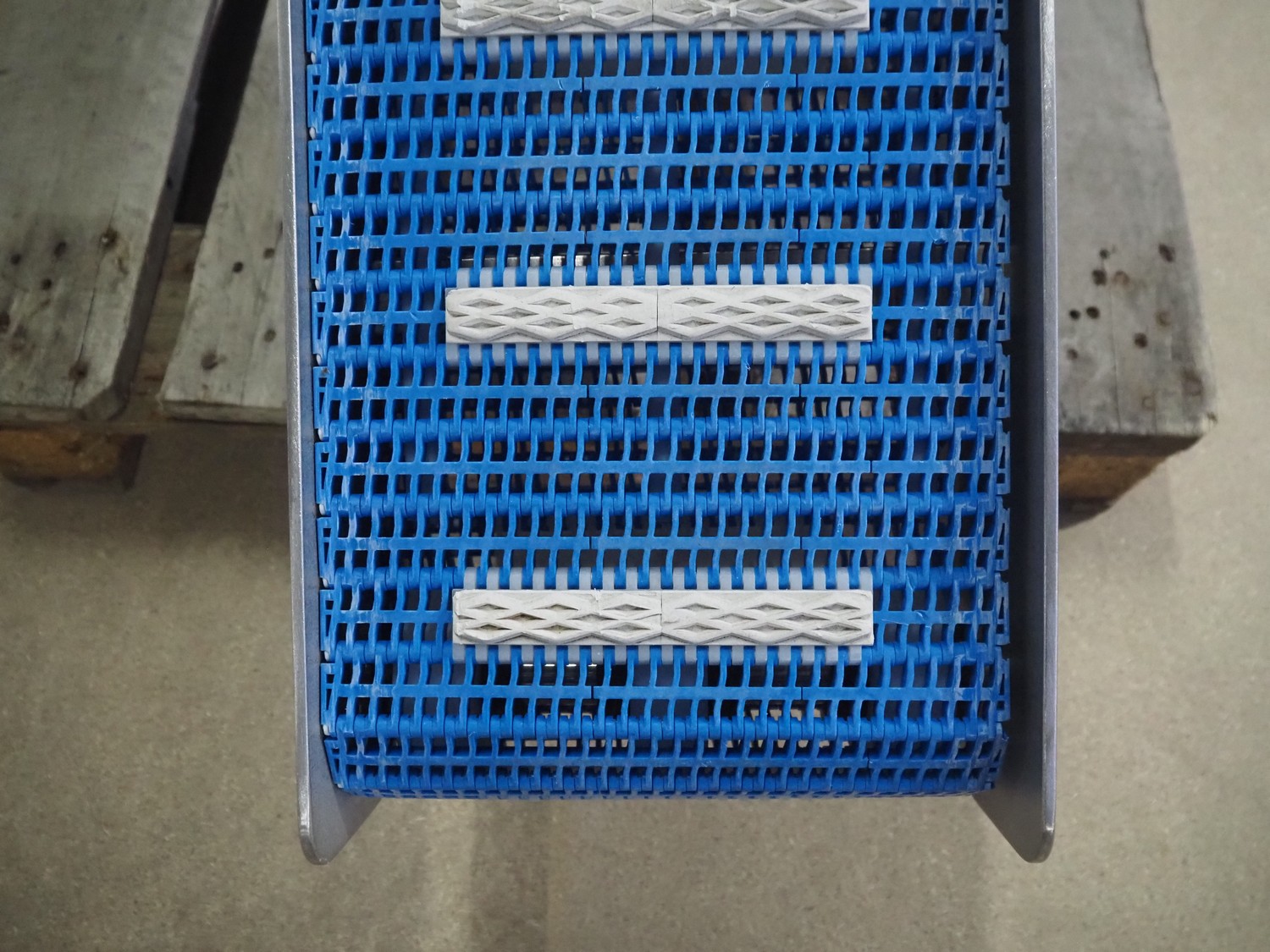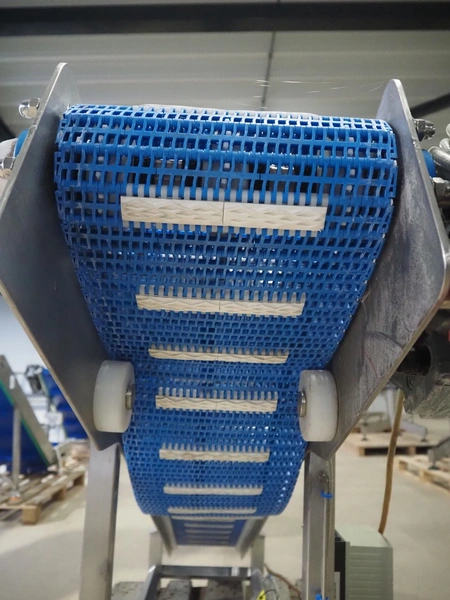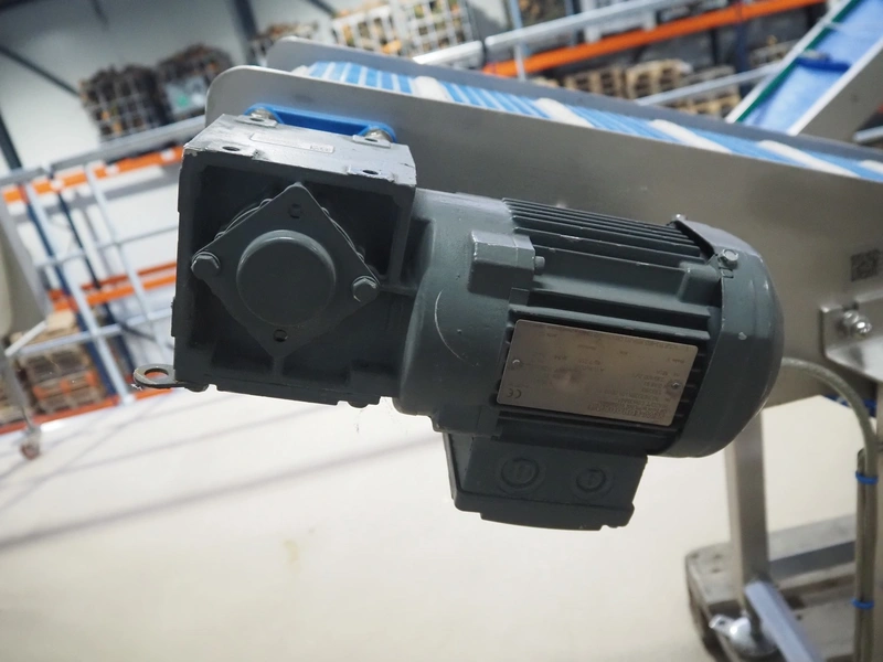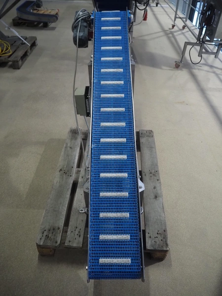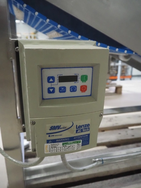 Elevating belt, s/s frame, plastic belt, belt width: 250 mm, elevating height: 950 mm, total dimensions: 1900 mm x 500 mm x 1000 mm.