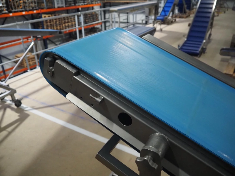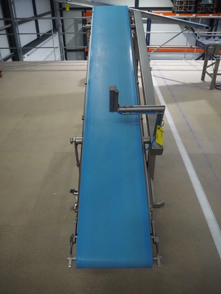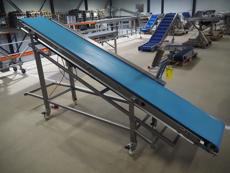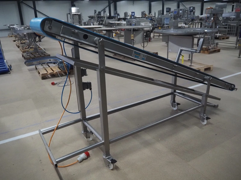 Groba mobile elevating belt, type: TB-404x2600, number: 114342, year of construction: 2006, weight: 175 kg, plastic belt, belt width: 385 mm, elevating belt: 1360 mm, total dimensions: 2650 mm x 650 mm x 1360 mm.