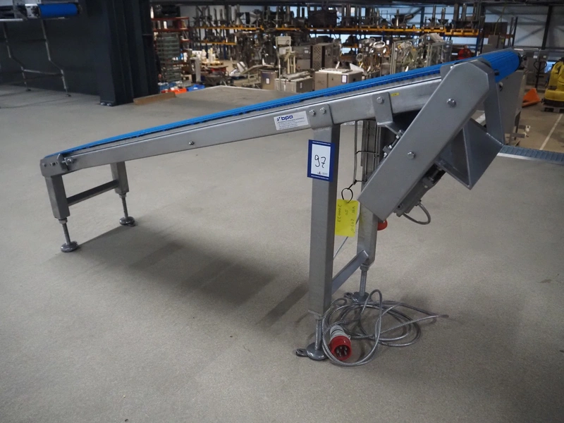 Blueprint Automation elevating belt, plastic belt, belt width: 375 mm, elevating height: 900 mm, total dimensions: 1750 mm x 650 mm x 900 mm.