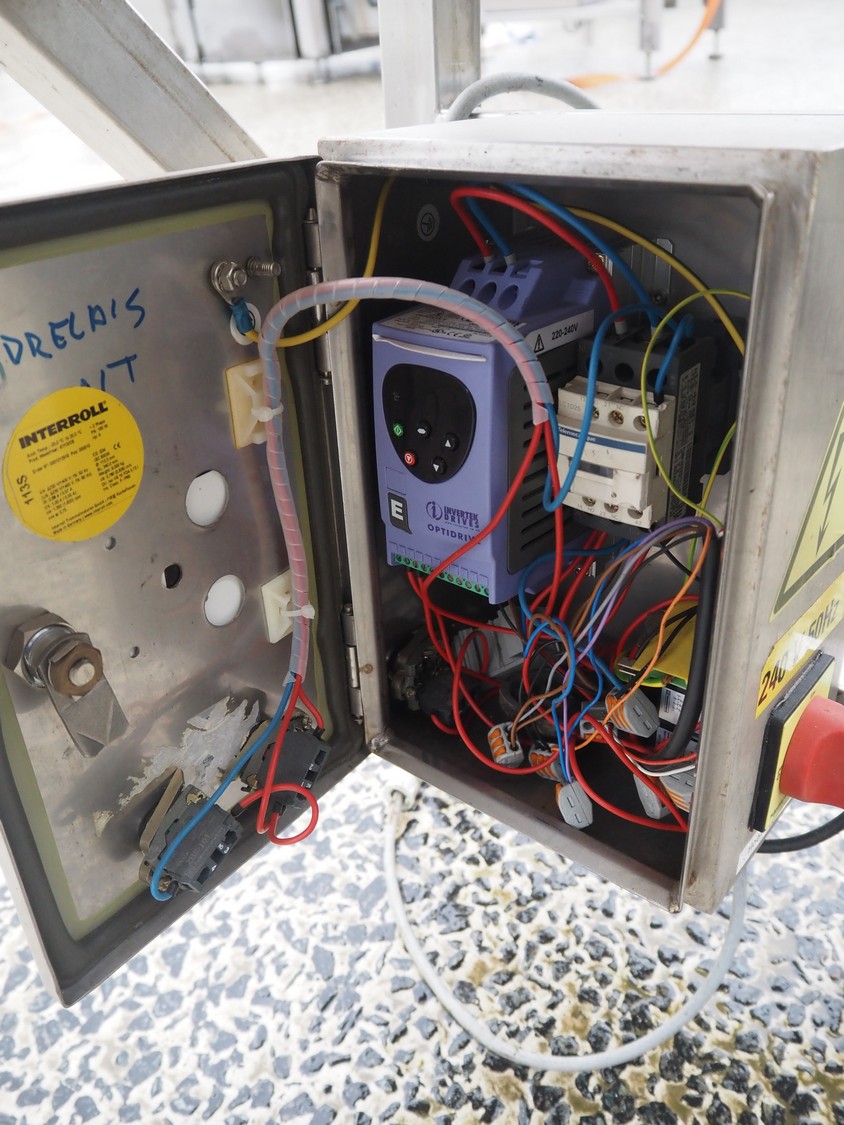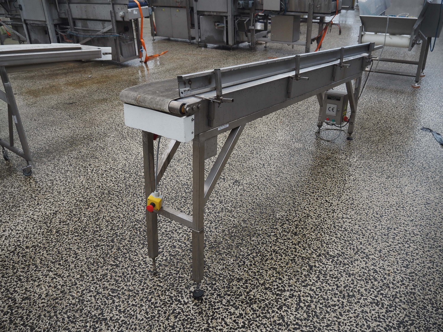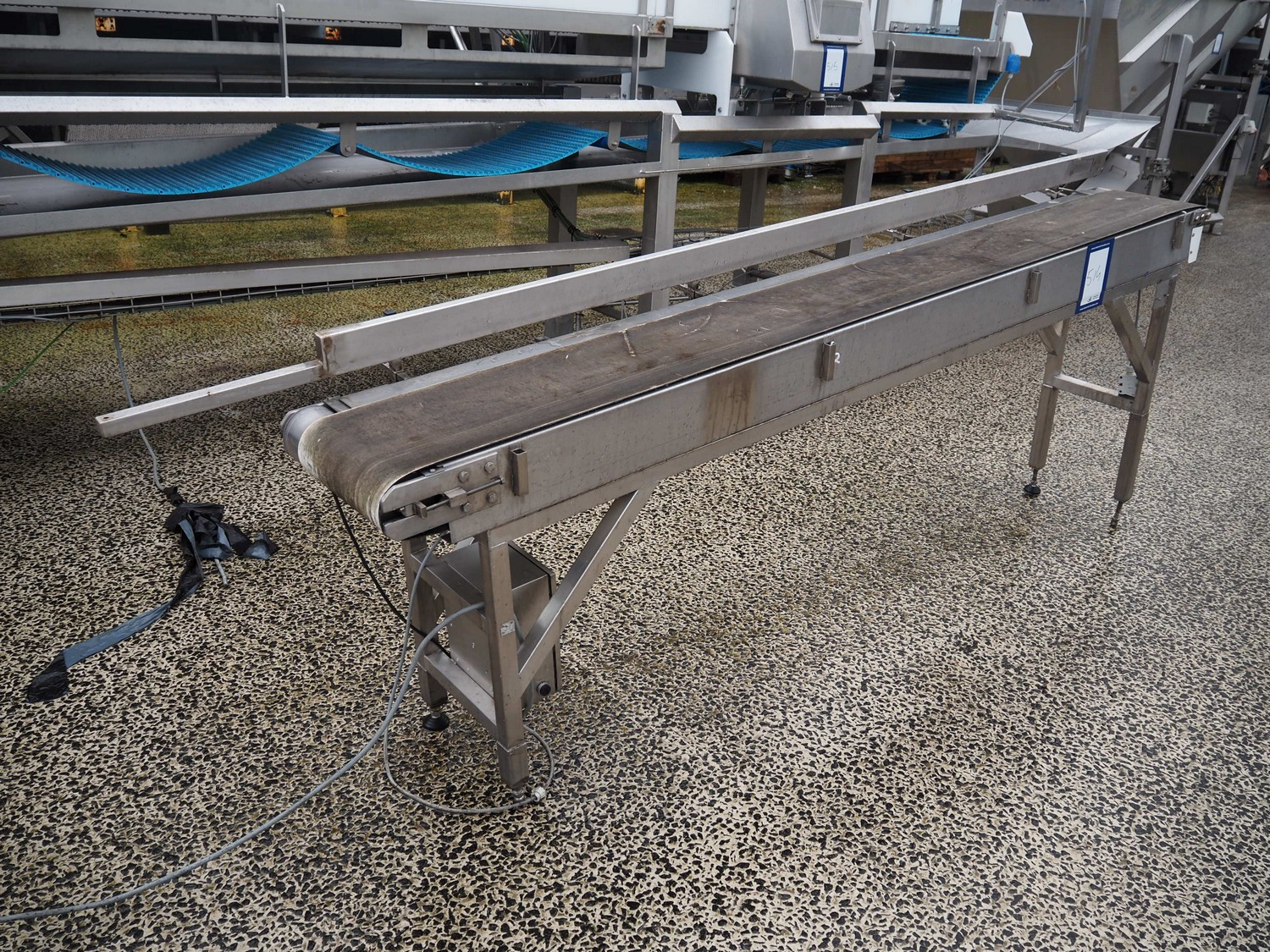 Elevating belt, s/s frame, plastic belt, belt width: 300 mm, elevating height: 1100 mm, total dimensions:3150 mm x 500 mm x 1100 mm.