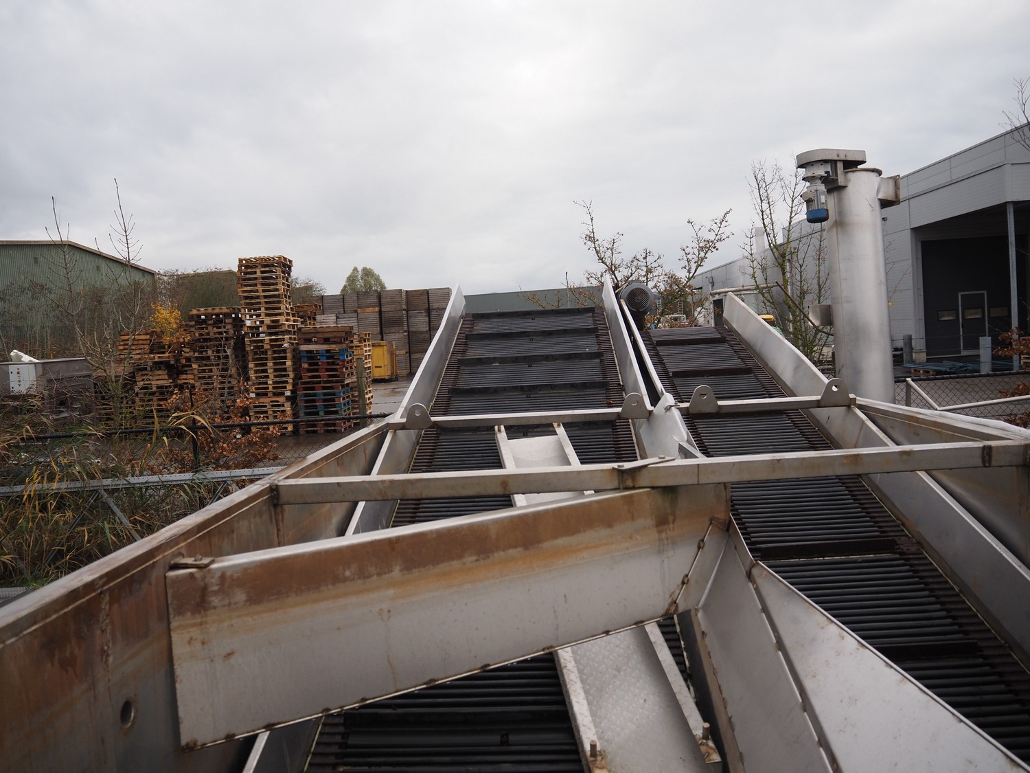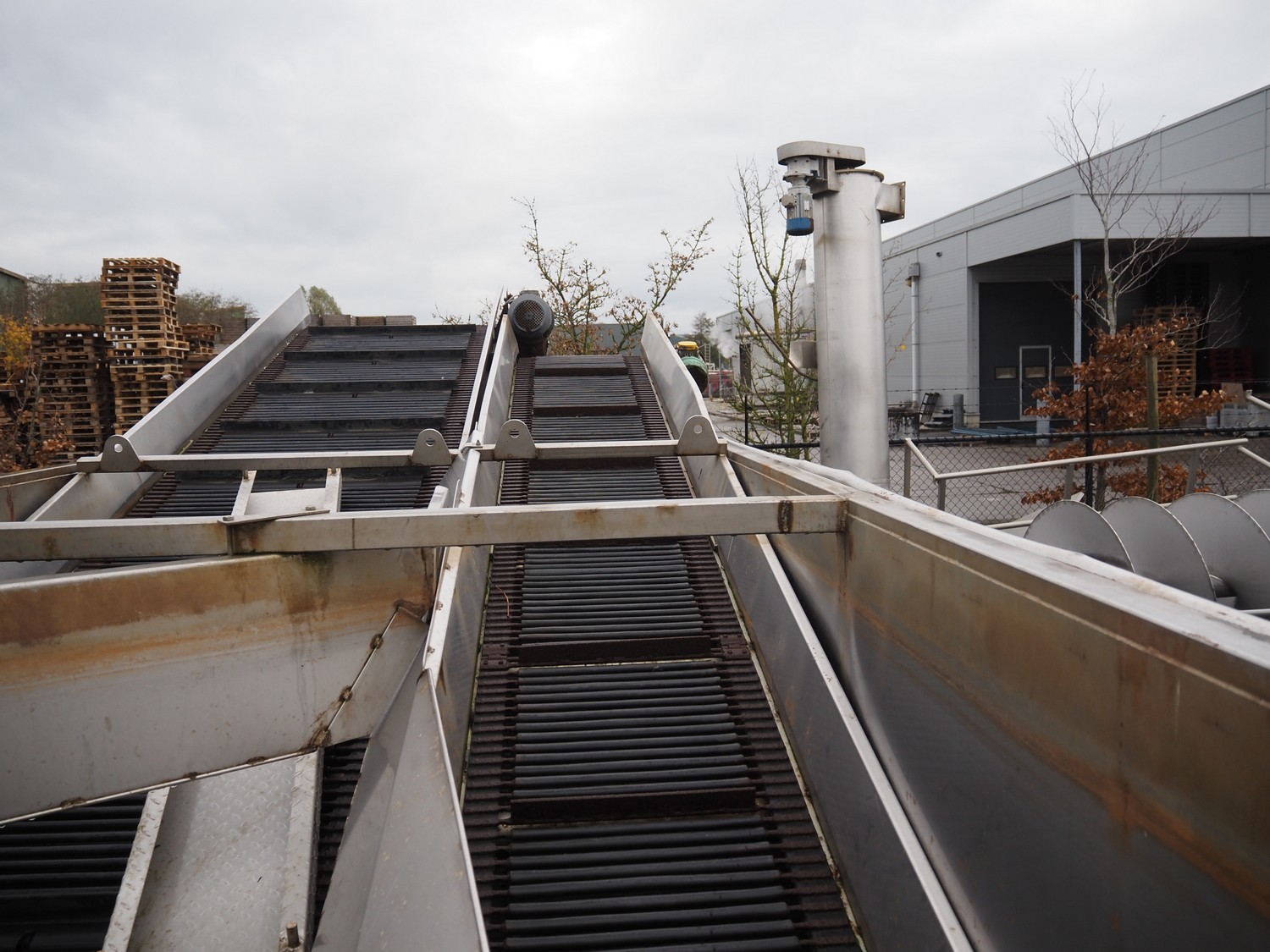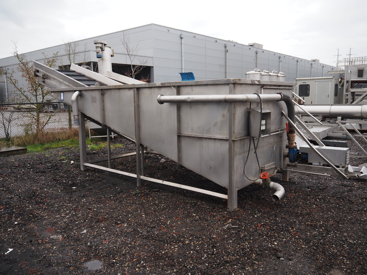Steel tub used as salt bath with steel elevating belt, belt width: 100 mm and 600 mm, total dimensions: 7100 mm x 2300 mm x 2500 mm.