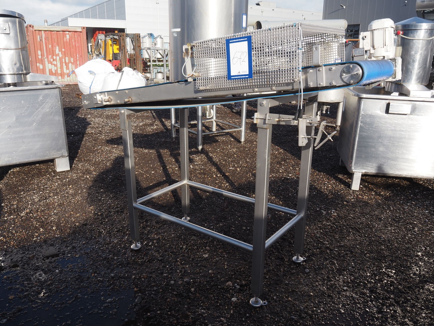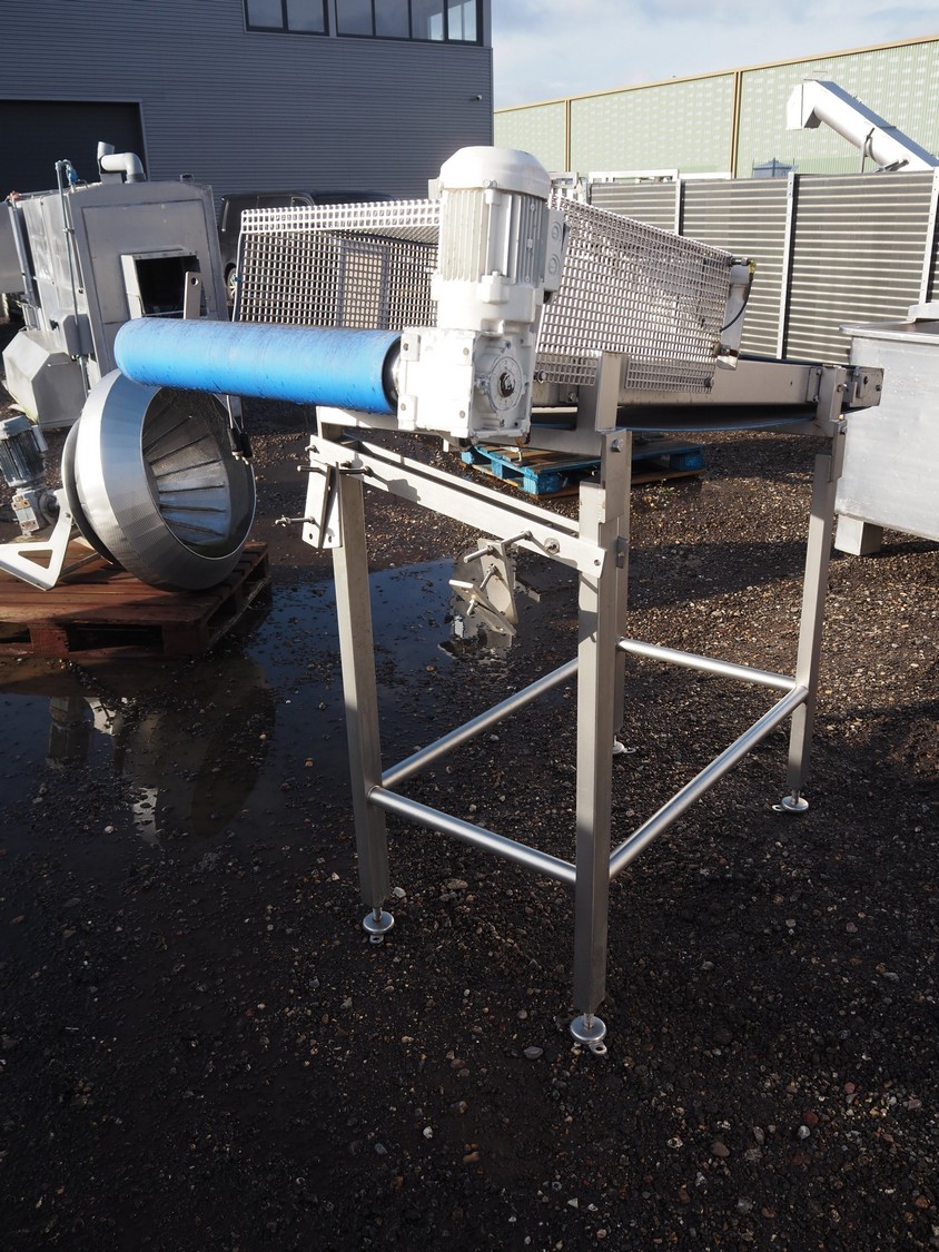 Elevating belt, plastic belt, belt width: 560 mm, elevating height: 1370 mm, total dimensions: 1950 mm x 730 mm x 1600 mm.