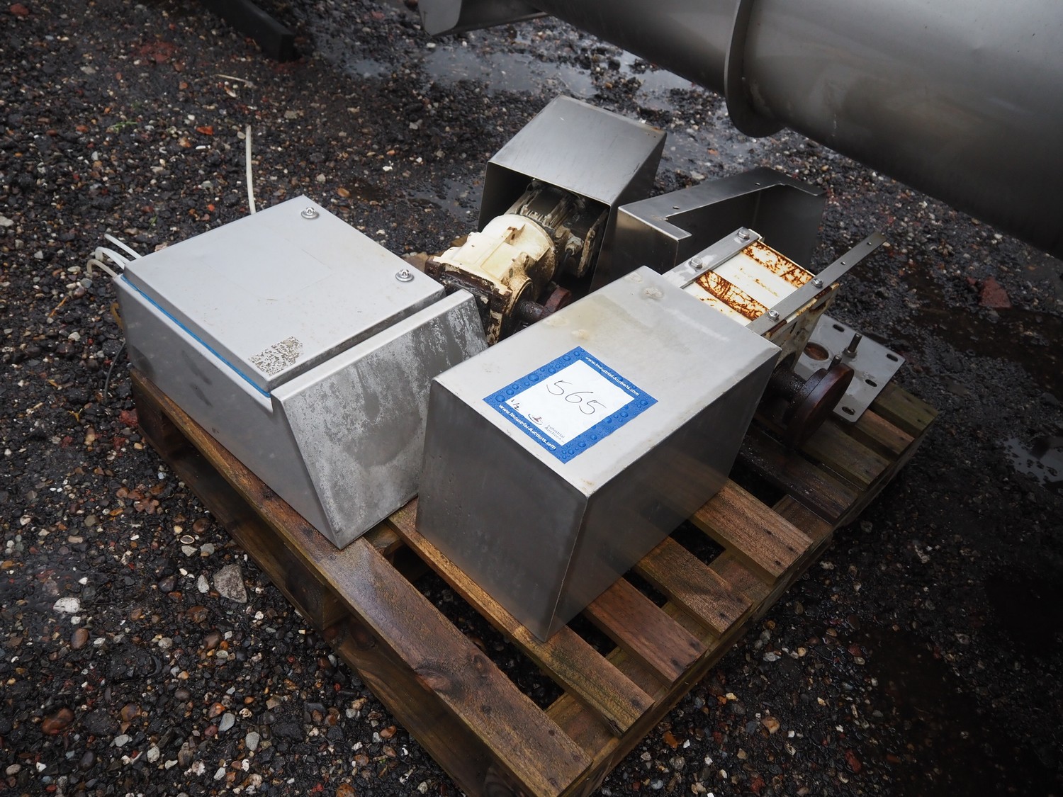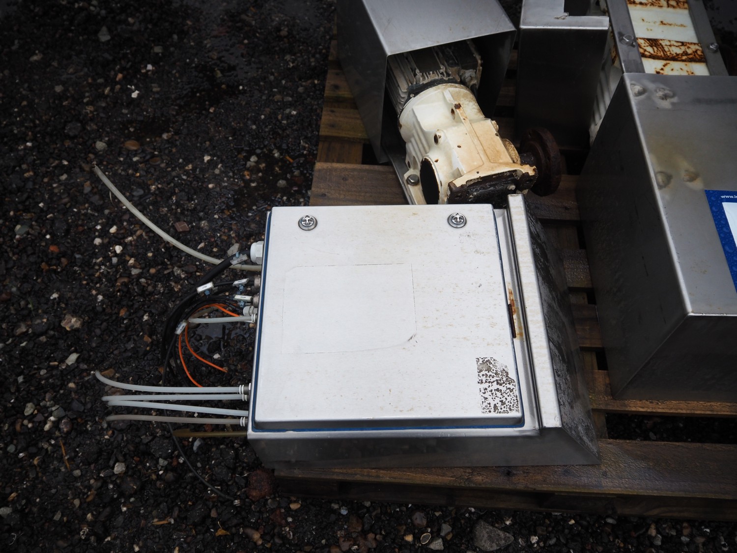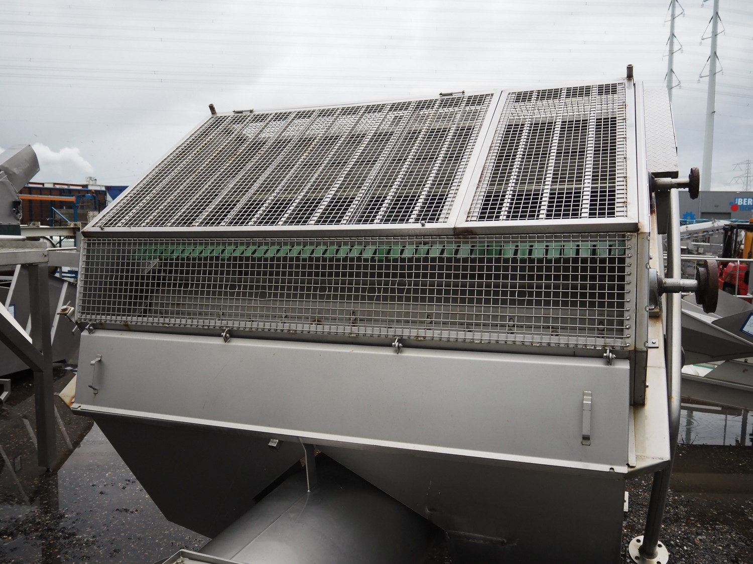 Kiremko elevating screw, type: S-BRSE, machine number: 13-1048-AA, year of construction: 2013, 400 V, 3 Ph, 50 Hz, s/s screw, screw diameter: 600 mm, tier: 310 mm, elevating height: 3100 mm, dimensions hopper: 2000 mm x 2000 mm x 1200 mm, total dimensions: 7200 mm x 2400 mm x 2750 mm.