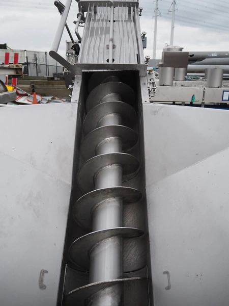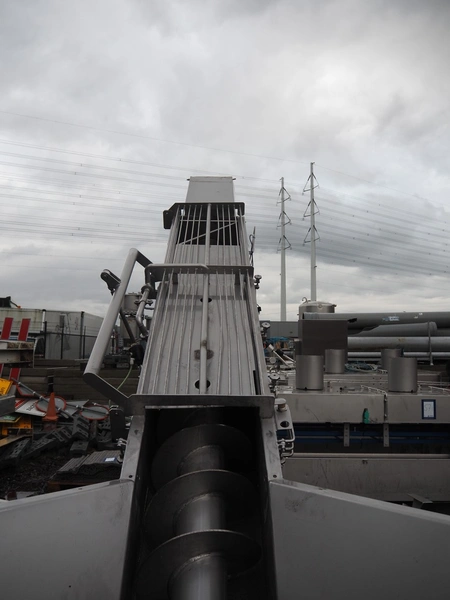 Boldt Systems elevating screw, type: BFCS 16/12, serial number: BFO 09-019.05, year of construction: 2009, s/s screw, diameter screw: 370 mm, tier: 220 mm, elevating height: 1900 mm, total dimensions: 3800 mm x 2000 mm x 3400 mm.