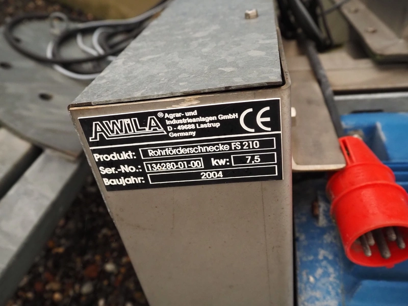 Awila mobile elevating screw, type: Rohförderschnecke FS 210, serial number: 136280-01-00, year of construction: 2004, 7.5 kW, elevating height: 3900 mm, total dimensions: 6500 mm x 2400 mm x 4100 mm.
