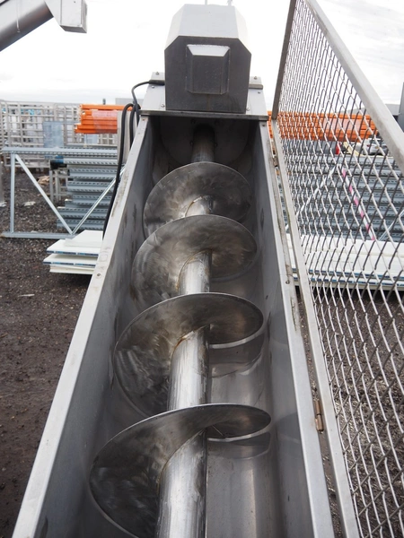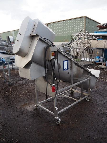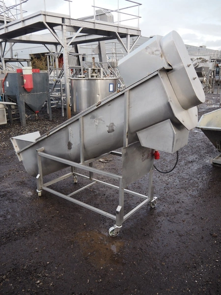 S/s mobile elevating screw, diameter screw: 450 mm, tier: 300 mm, elevating height: 900 mm, total dimensions: 2600 mm x 650 mm x 1880 mm.