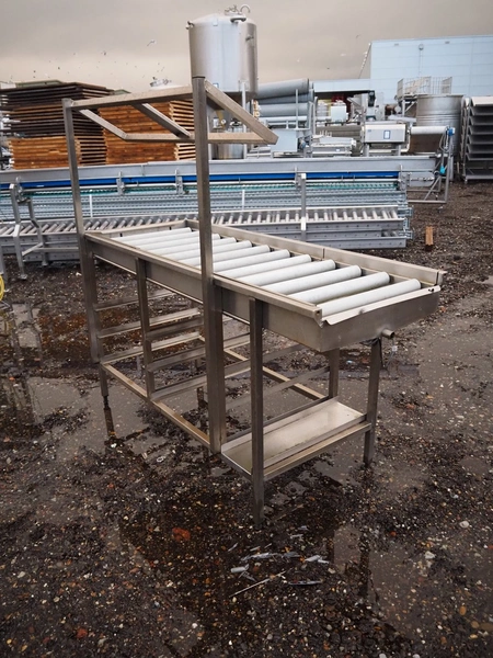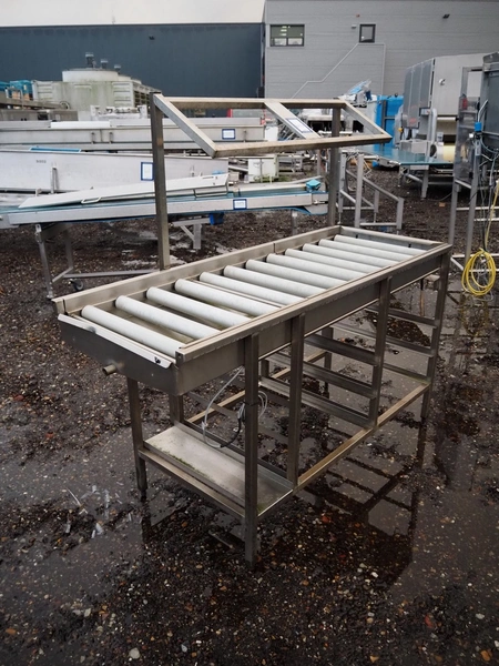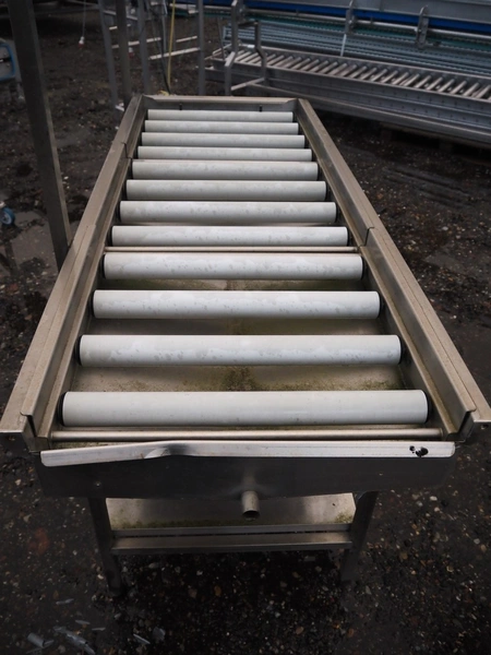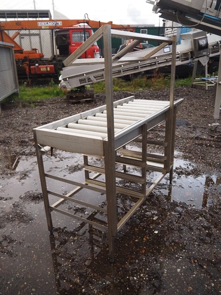 Roller conveyor, s/s frame, plastic rollers, roller width: 520 mm, total dimensions: 1600 mm x 660 mm x 1540 mm.