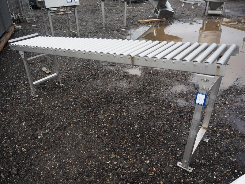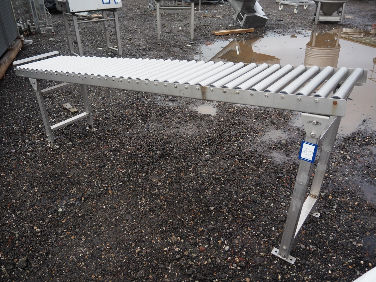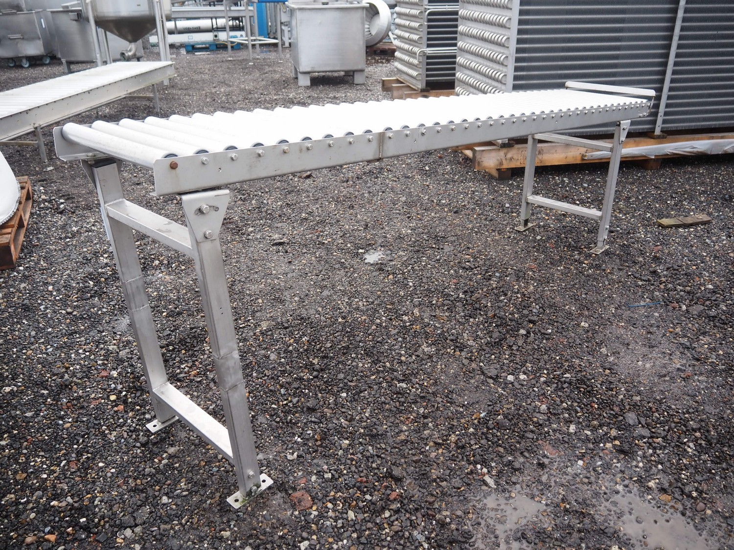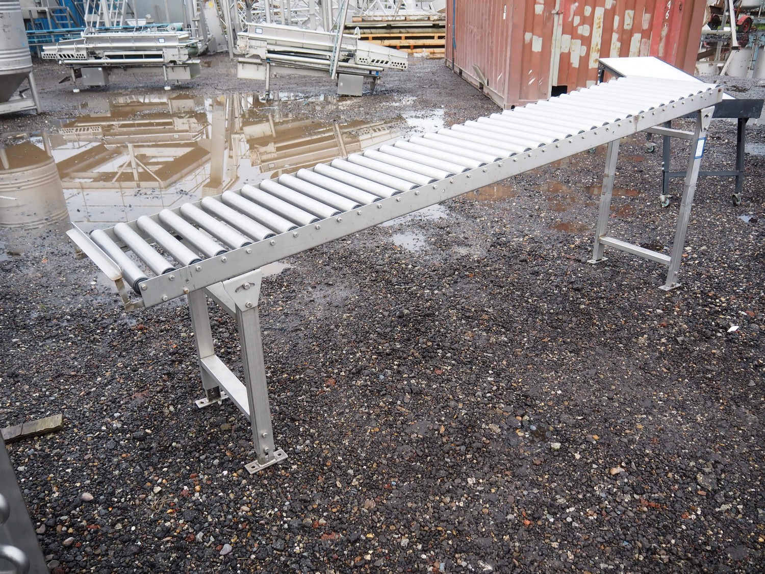 Roller conveyor, s/s frame, s/s rollers, roller width: 500 mm, total dimensions: 2850 mm x 500 mm x 1020 mm.