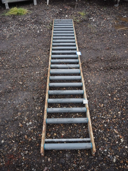 Roller conveyor, steel frame, plastic rollers, roller width: 400 mm, total dimensions: 3000 mm x 450 mm x 80 mm.