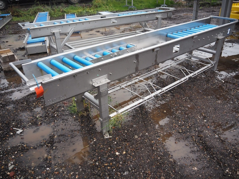 Feltracon roller conveyor, s/s frame, type: 72K, number: 3580-72K1, year of construction: 2008, plastic rollers, roller width: 400 mm, total dimensions: 3100 mm x 500 mm x 800 mm.
