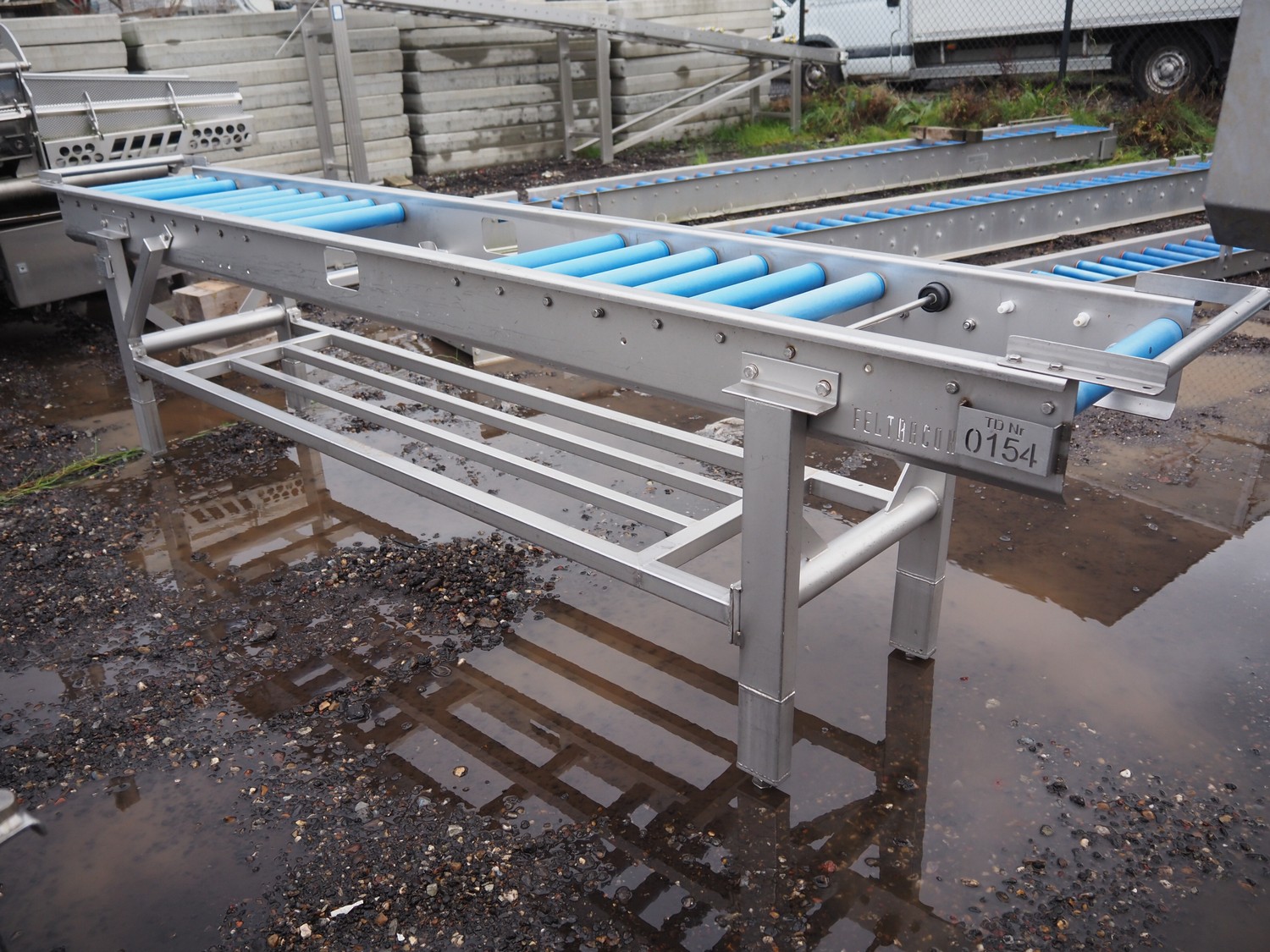Feltracon roller conveyor, s/s frame, type: 72K, number: 3577-72K1, year of construction: 2008, plastic rollers, roller width: 400 mm, total dimensions: 3100 mm x 500 mm x 800 mm.