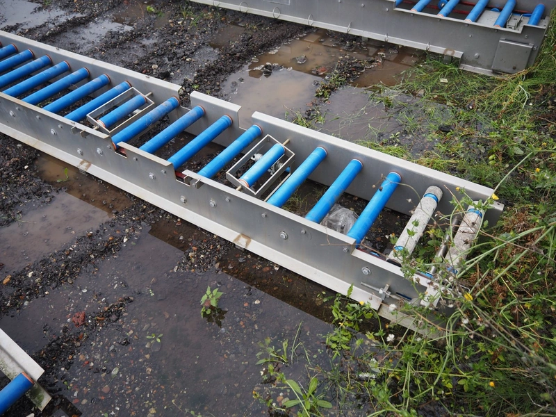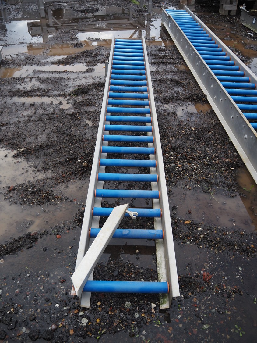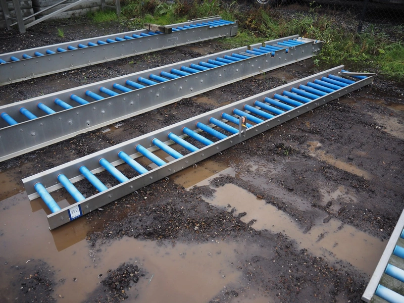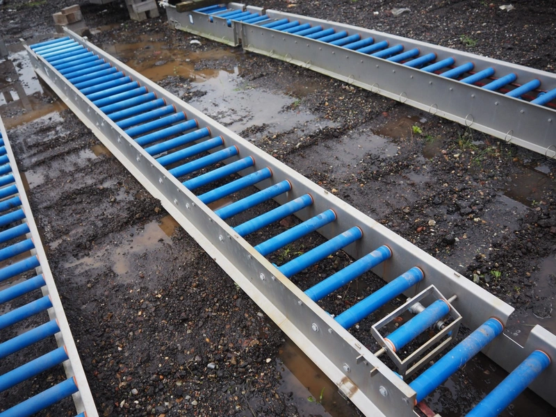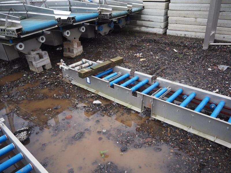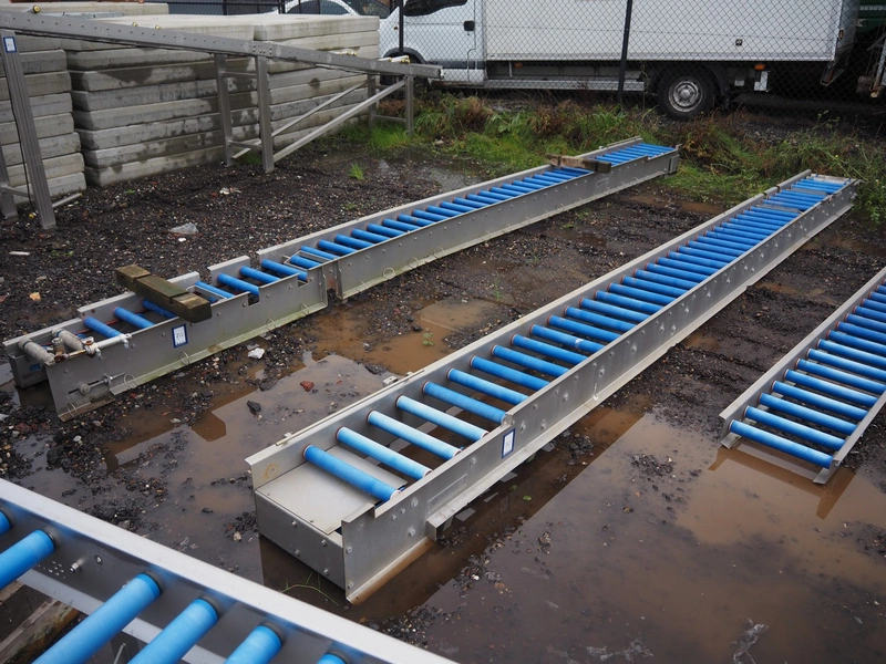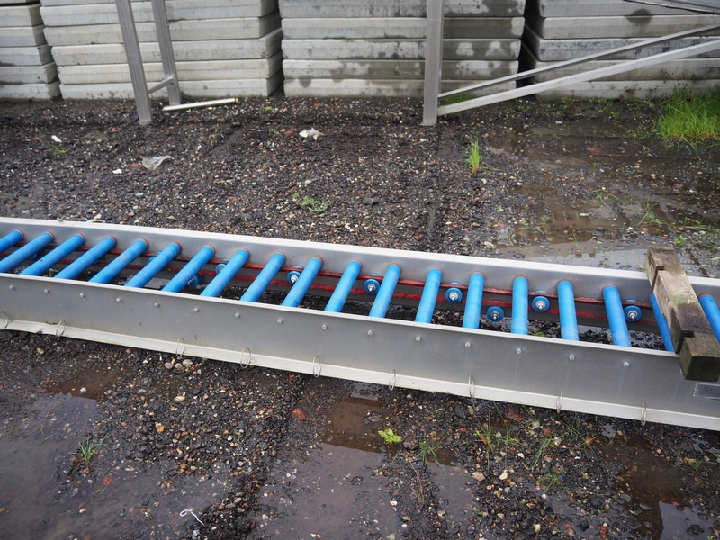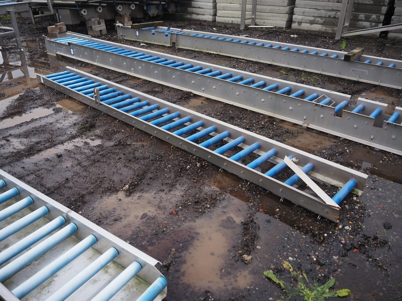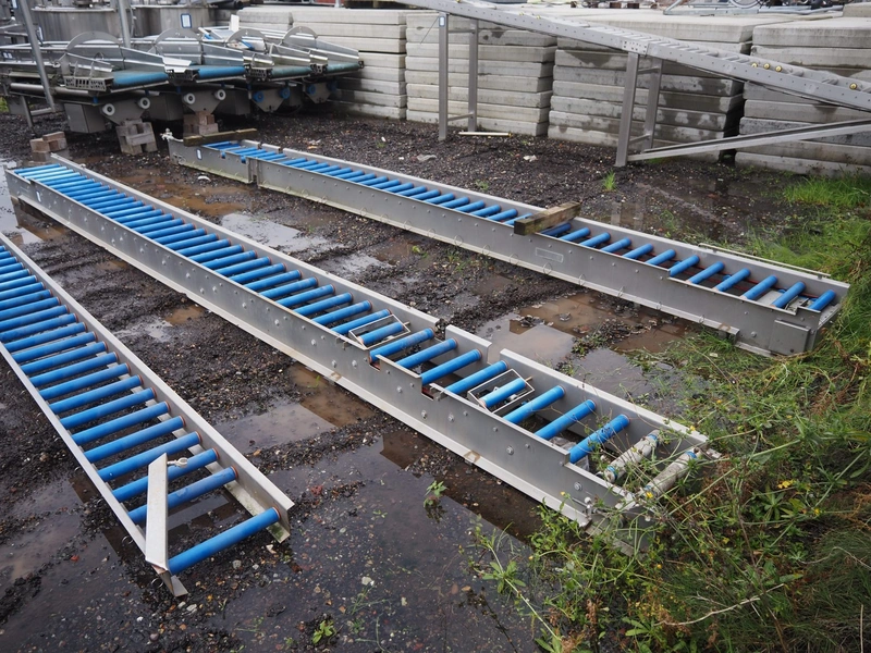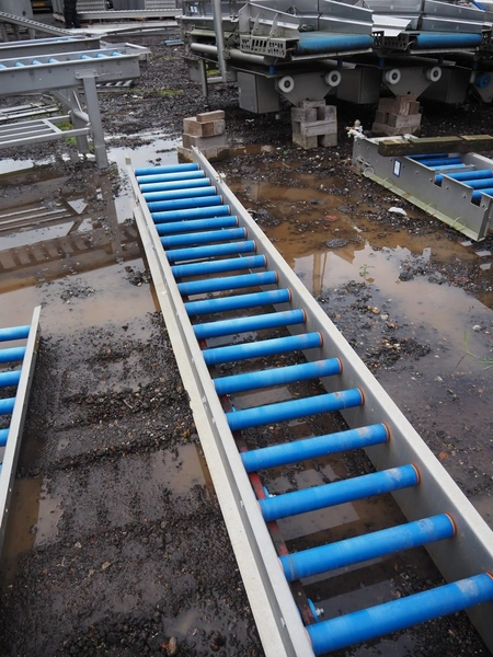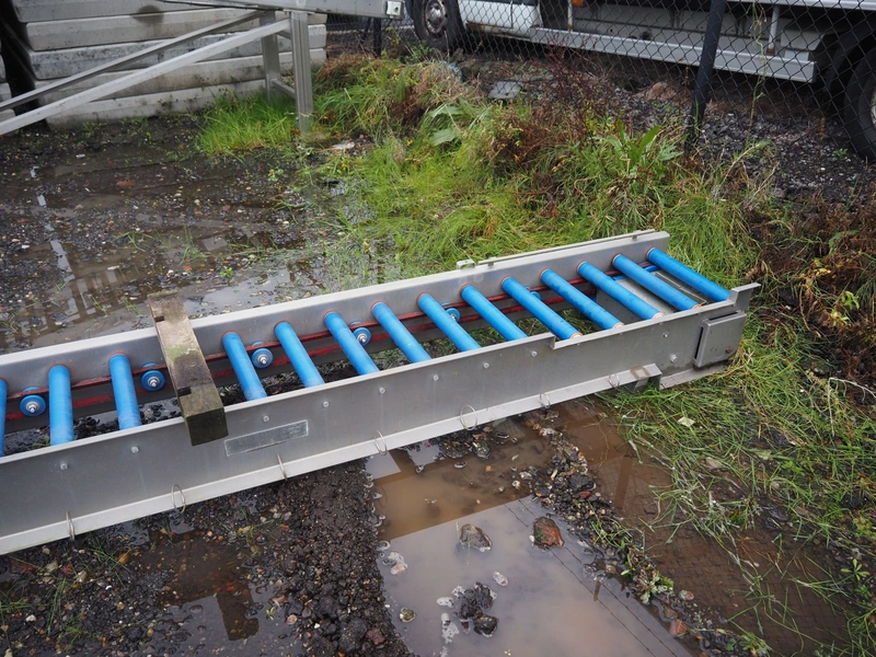Food Technology driven roller conveyor, plastic rollers, roller width: 400, total dimensions: 6350 mm x 600 mm x 350 mm.
