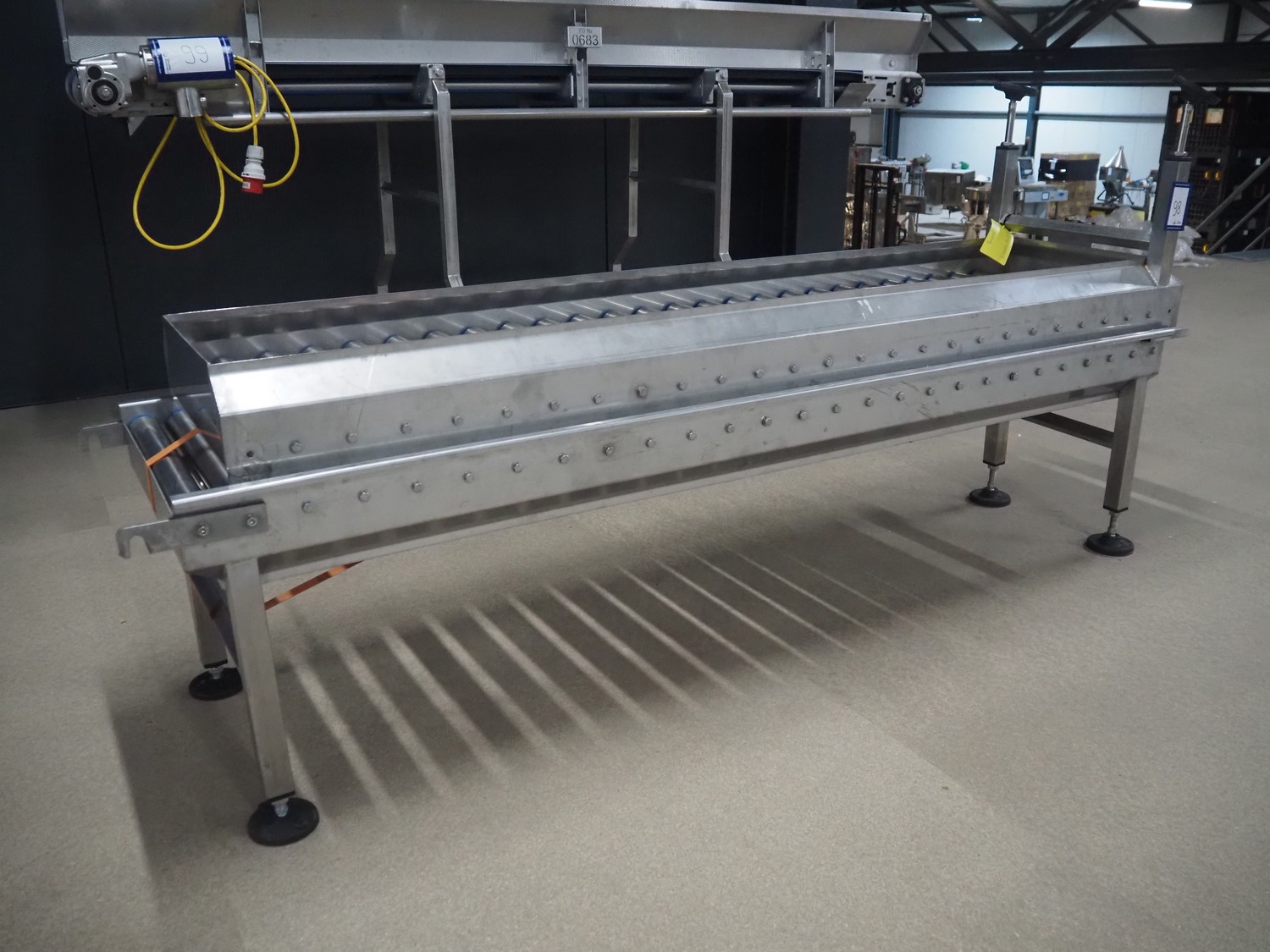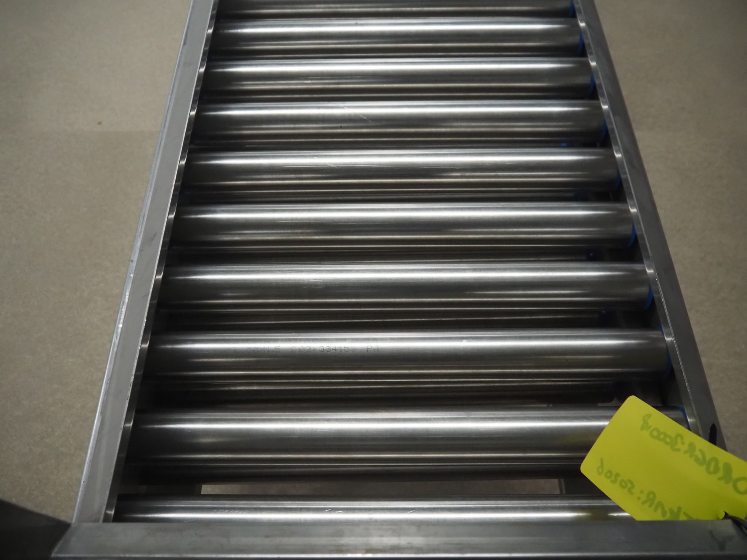 2 s/s roller conveyors, s/s rollers, roller width: 480 mm, dimensions: (2x) 2000 mm x 540 mm x 520 mm.