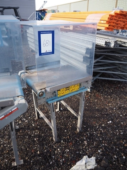 Transport belt, s/s frame, plastic belt, belt width: 570 mm, total dimensions: 2000 mm x 1000 mm x 1000 mm.0 bidsLot is closed -