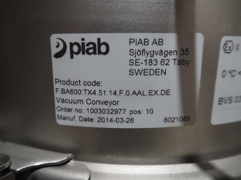 Piab AB vacuum conveyor, year of construction: 26-03-2014, dimensions: (1x) 400 mm x 400 mm x 1050 mm, (1x) 800 mm x 550 mm x 550 mm.