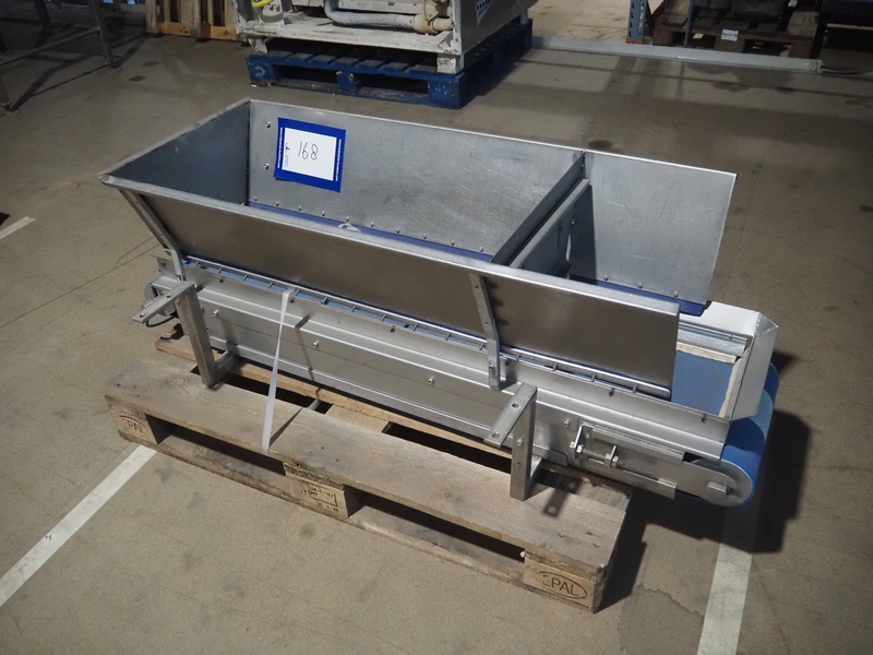 Transport belt, s/s frame, plastic belt, belt width: 290 mm, total dimensions: 1500 mm x 600 mm x 500 mm.