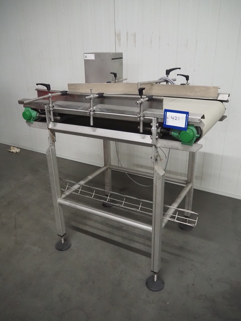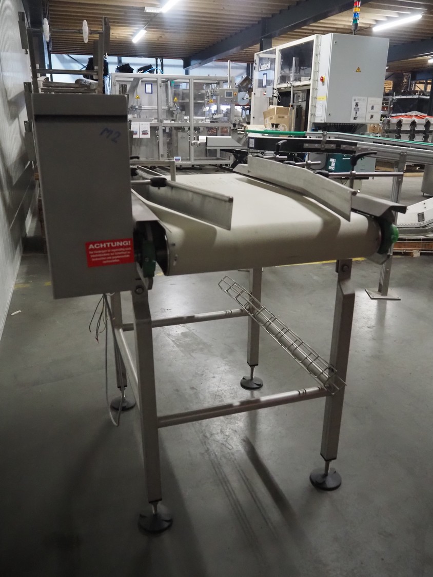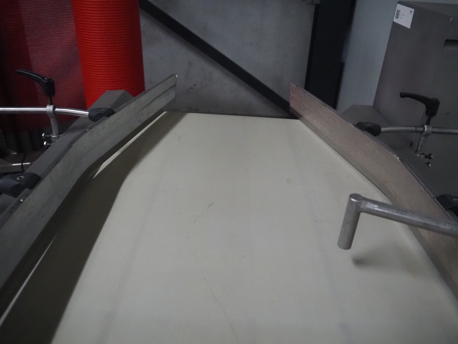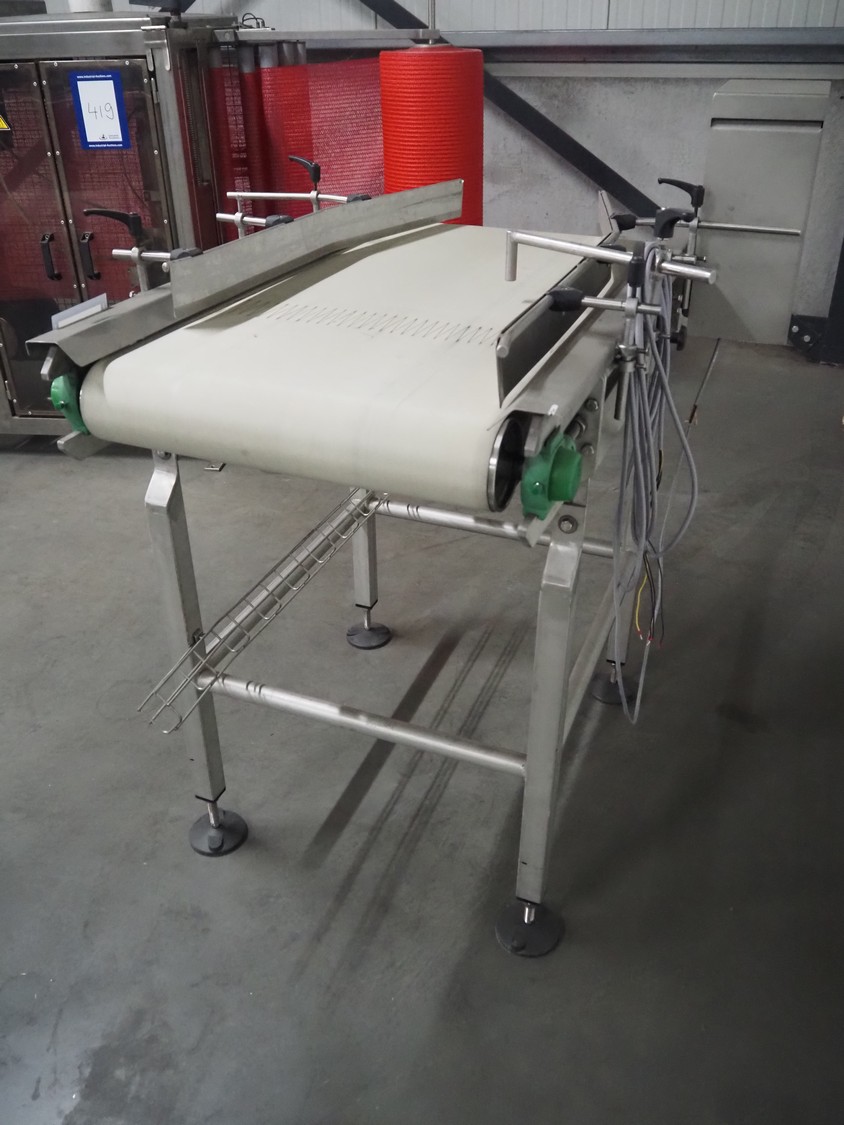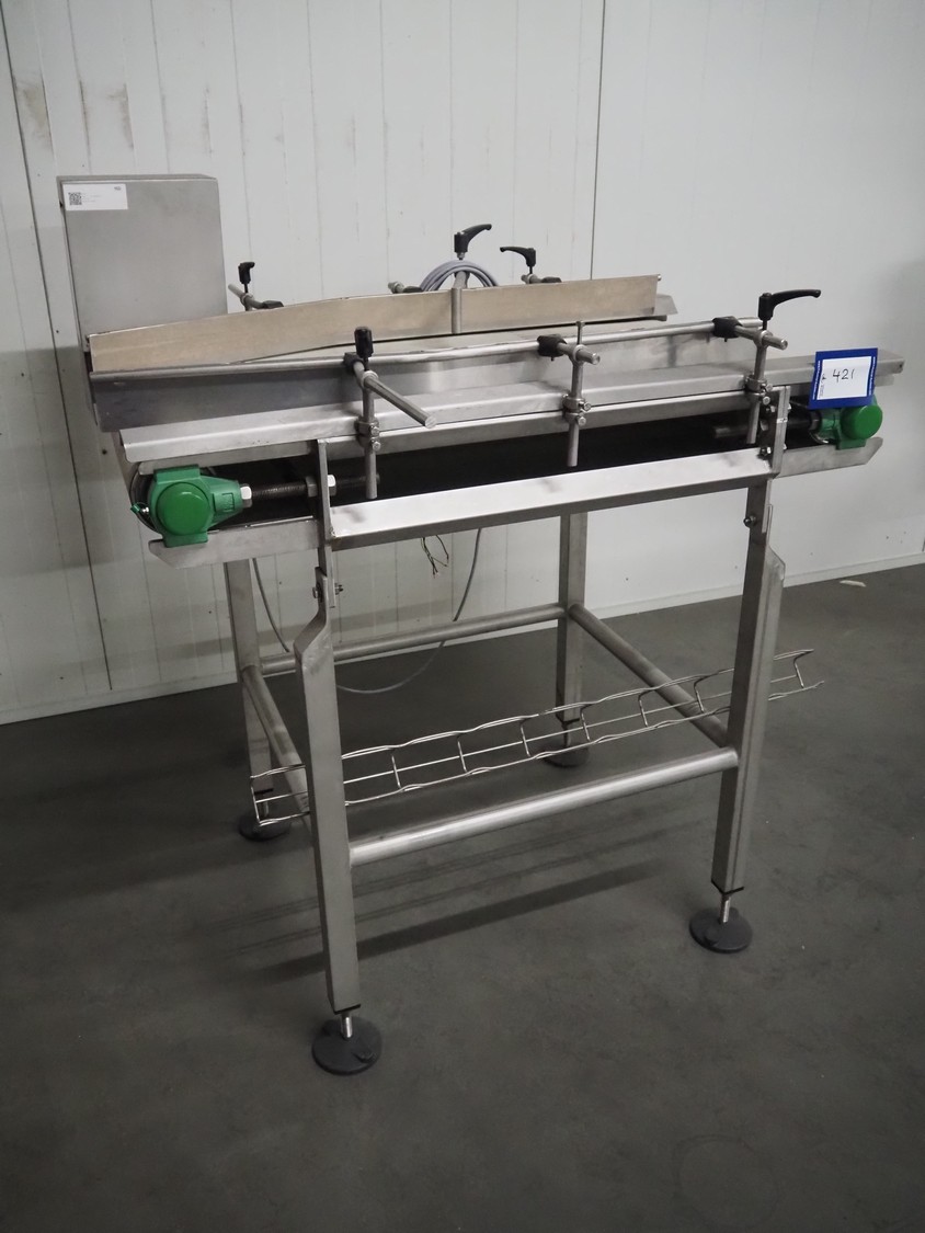 Transport belt, s/s frame, plastic belt, belt width: 500 mm, total dimensions: 1000 mm x 1000 mm x 1170 mm.