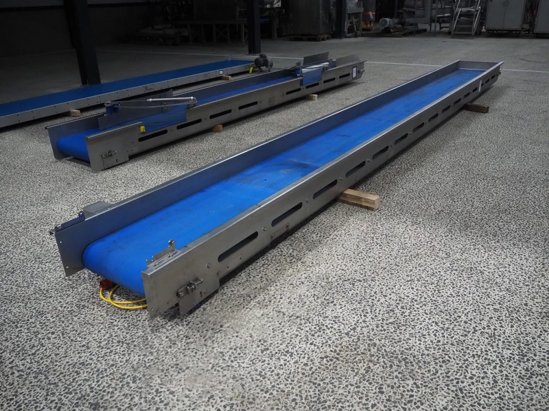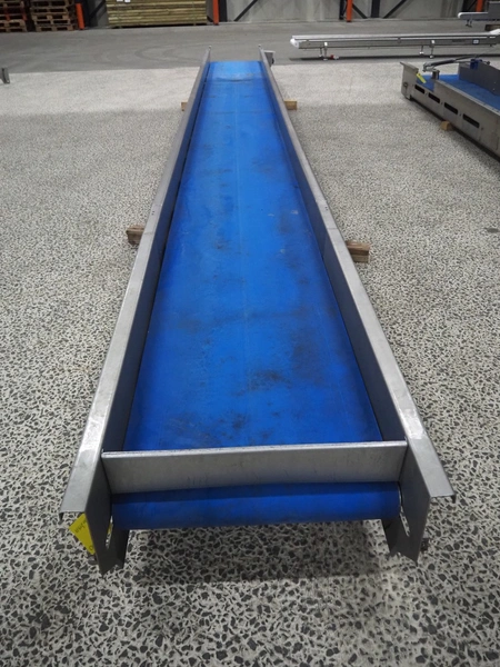 Transport belt, plastic belt, belt width: 600 mm, total dimensions: 7050 mm x 850 mm x 300 mm.