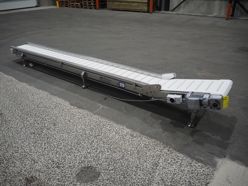 Hellings Machinebouw B.V. transport belt, year of construction: 2017, plastic belt with dividers, belt width: 370 mm, divider height: 10 mm, distance between dividers: 90 mm, total dimensions: 4150 mm x 700 mm x 500 mm.
