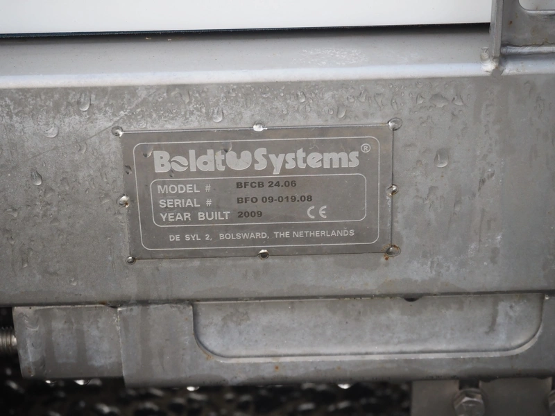 Boldtus Systems transport belt, model: BFCB 24.06, serial number: BFO 09-019.08, year of construction: 2009, plastic belt, belt width: 600 mm, total dimensions: 1900 mm x 1000 mm x 300 mm.