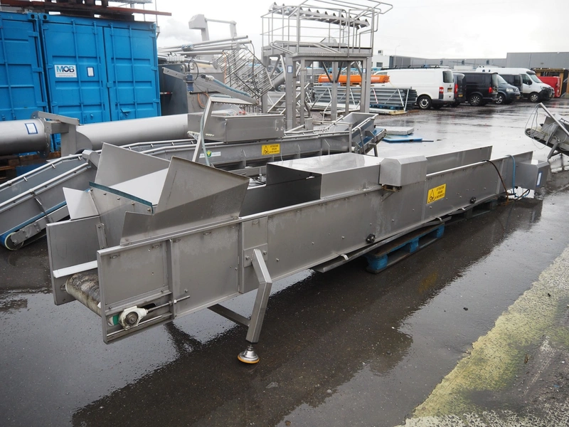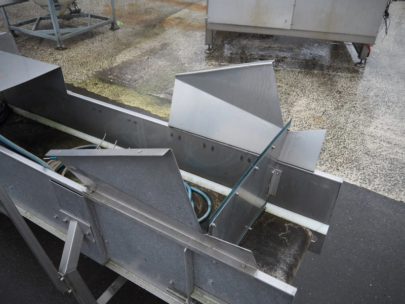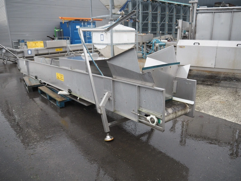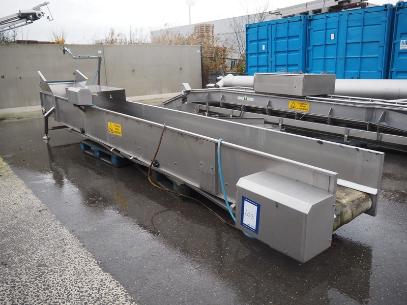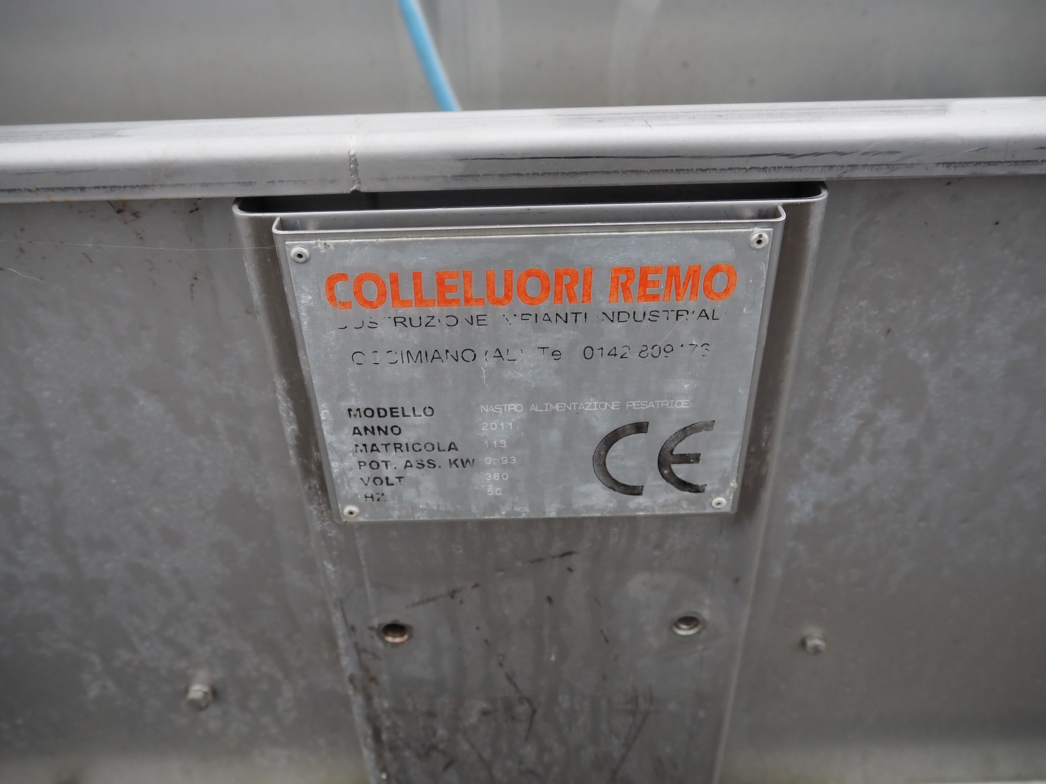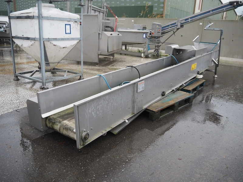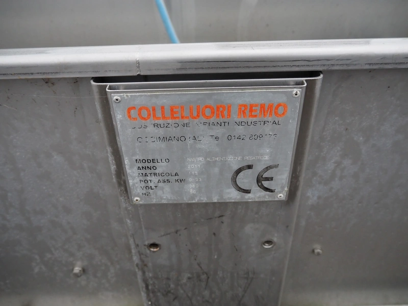 Colleluori Remo transport belt, model: NASTRO ALIMENTAZIONE PESATRICE, machine number: 113, year of construction: 2011, 380 V, 50 Hz, plastic belt, belt width: 500 mm, total dimensions: 6000 mm x 950 mm x 1500 mm.