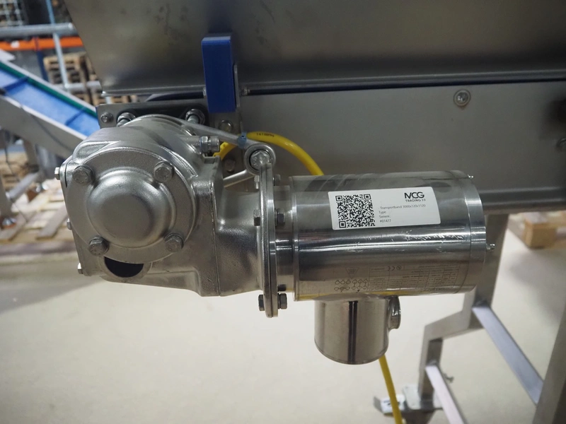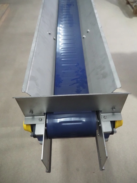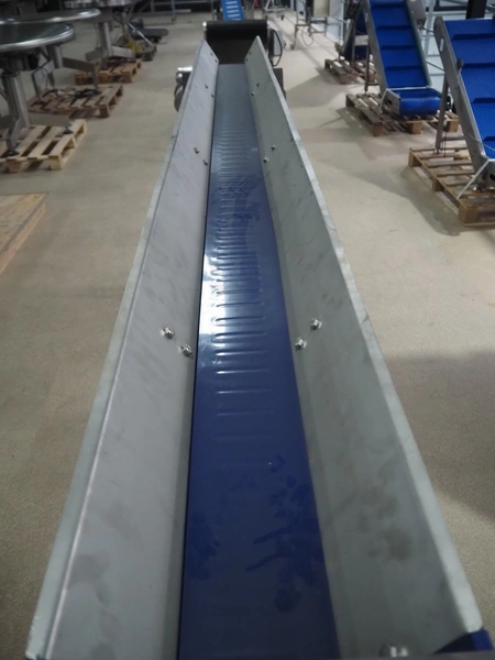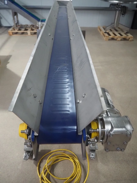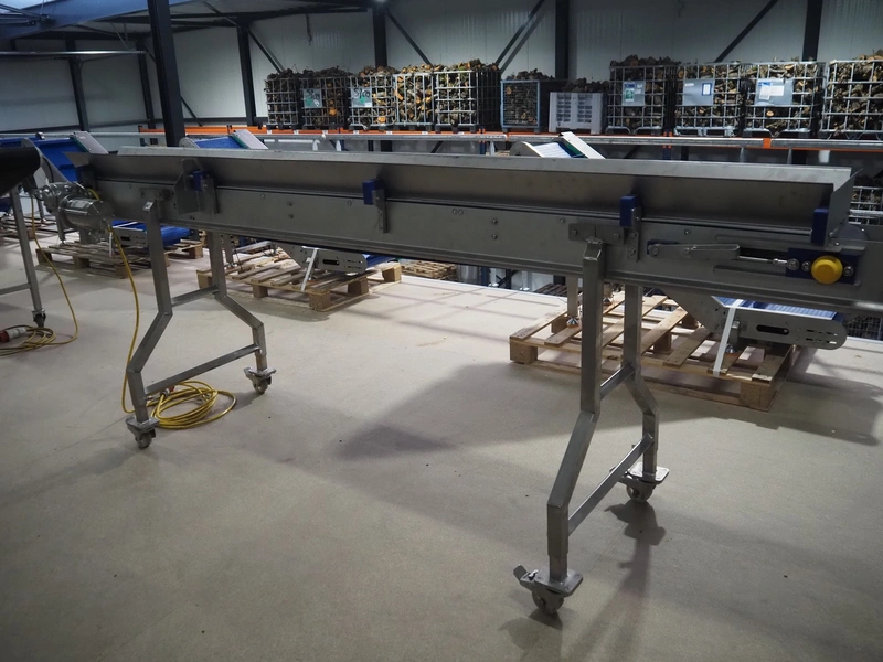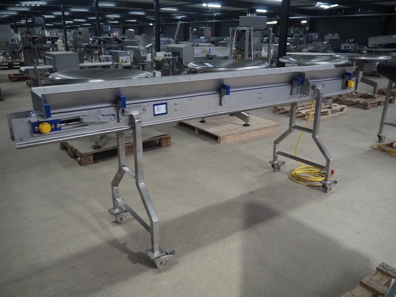 Mobile transport belt, s/s frame, plastic belt, belt width: 160 mm, total dimensions: 2900 mm x 400 mm x 1100 mm.