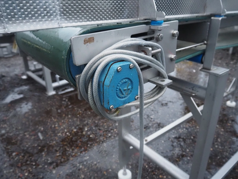 Transport belt, s/s frame, plastic belt, belt width: 400 mm, total dimensions: 3400 mm x 550 mm x 1330 mm.