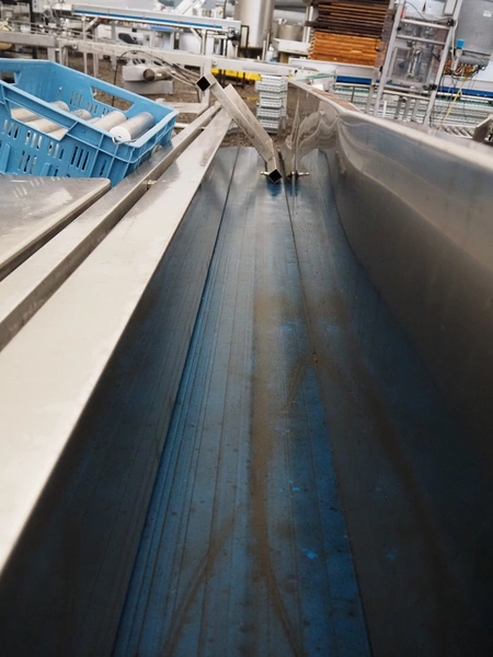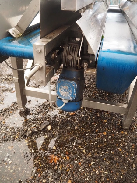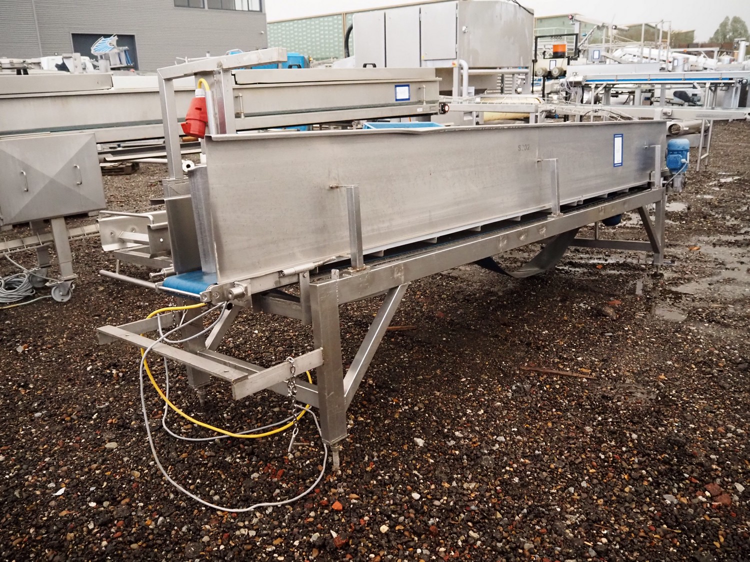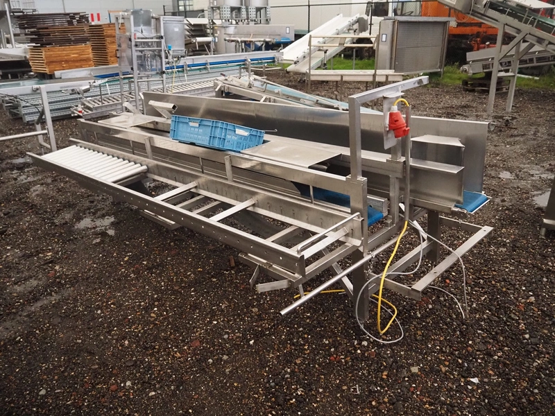 Transport belt, 2 plastic belts, belt width: 225 mm and 175 mm, s/s rollers, roller width: 400 mm, total dimensions: 3950 mm x 1400 mm x 1360 mm.