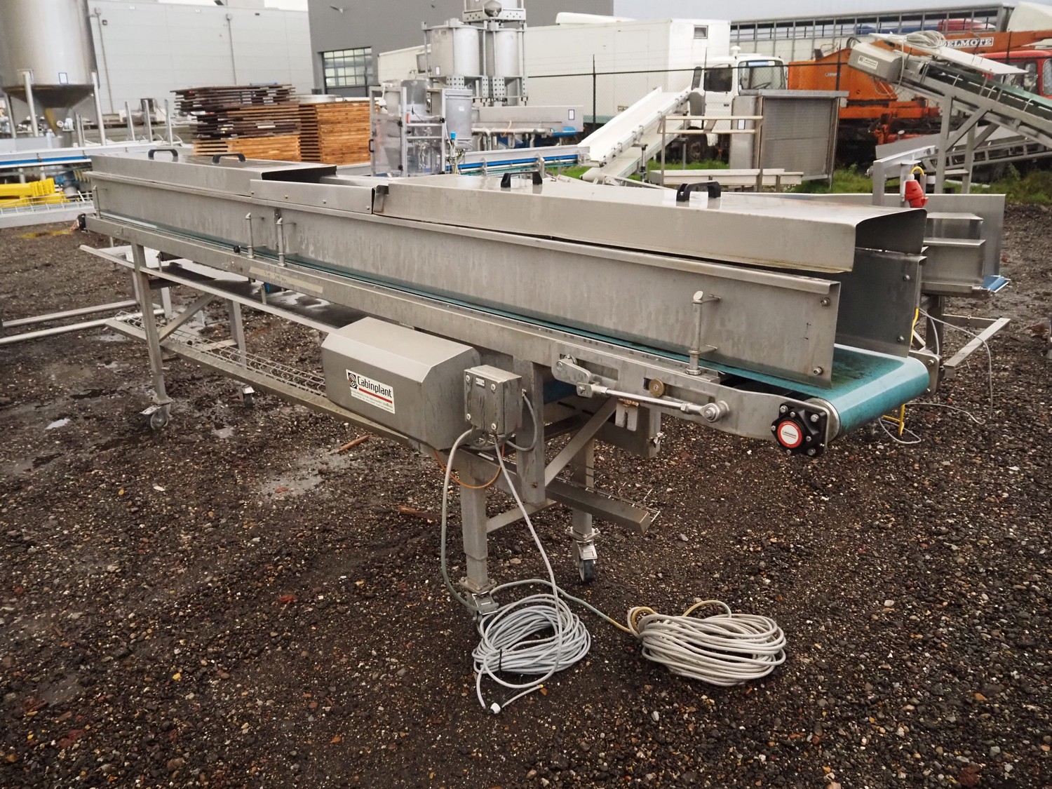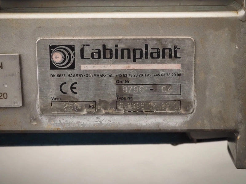 Cabinplant mobile transport belt, order number: 8796-01, 250 kg, plastic belt, belt width: 600 mm, total dimensions: 4000 mm x 1000 mm x 1000 mm.