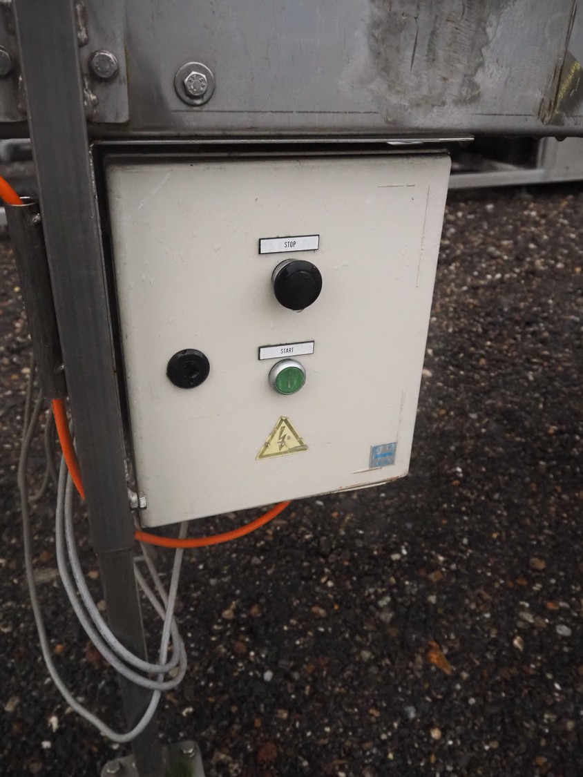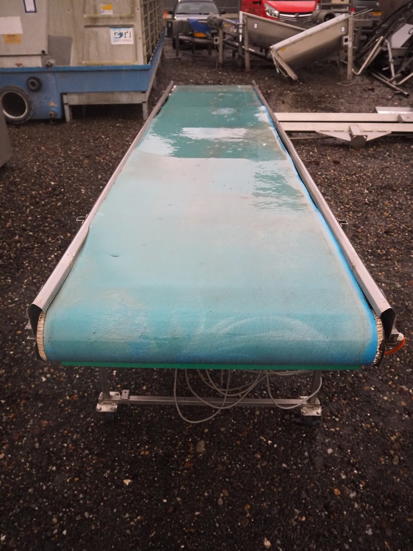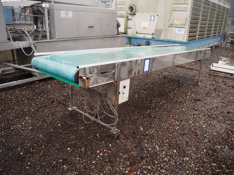 Mobile transport belt, plastic belt, belt width: 750 mm, total dimensions: 4000 mm x 900 mm x 1000 mm.