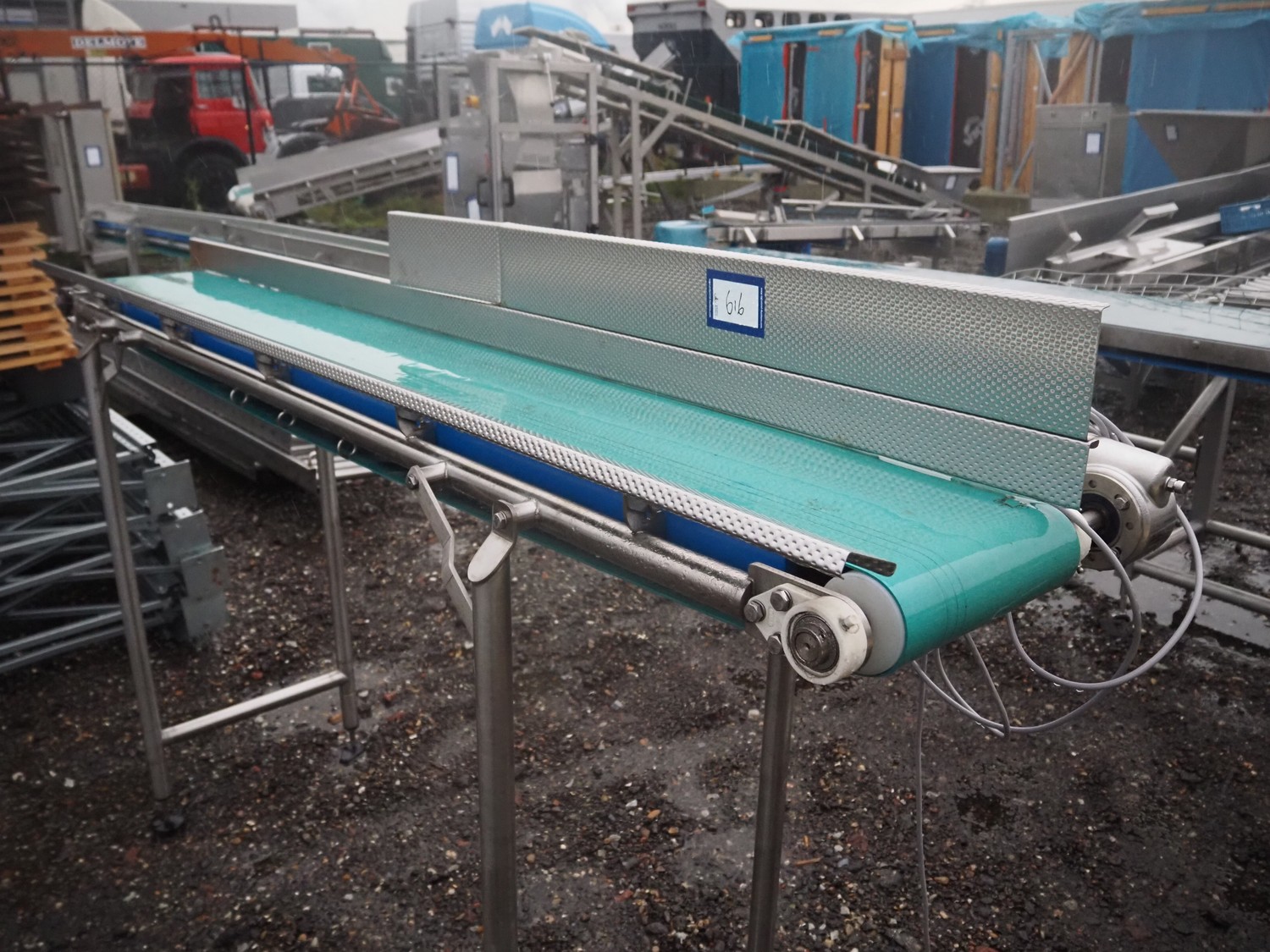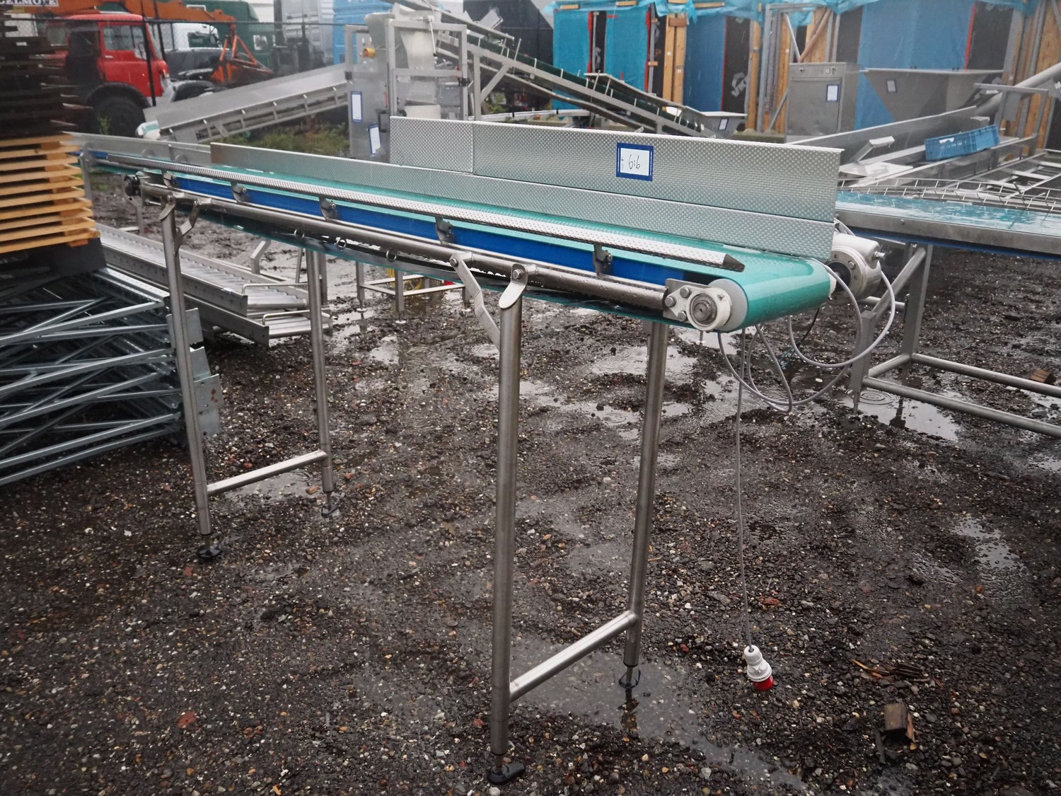 Transport belt, s/s frame, plastic belt, belt width: 300 mm, total dimensions: 2400 mm x 650 mm x 1500 mm.