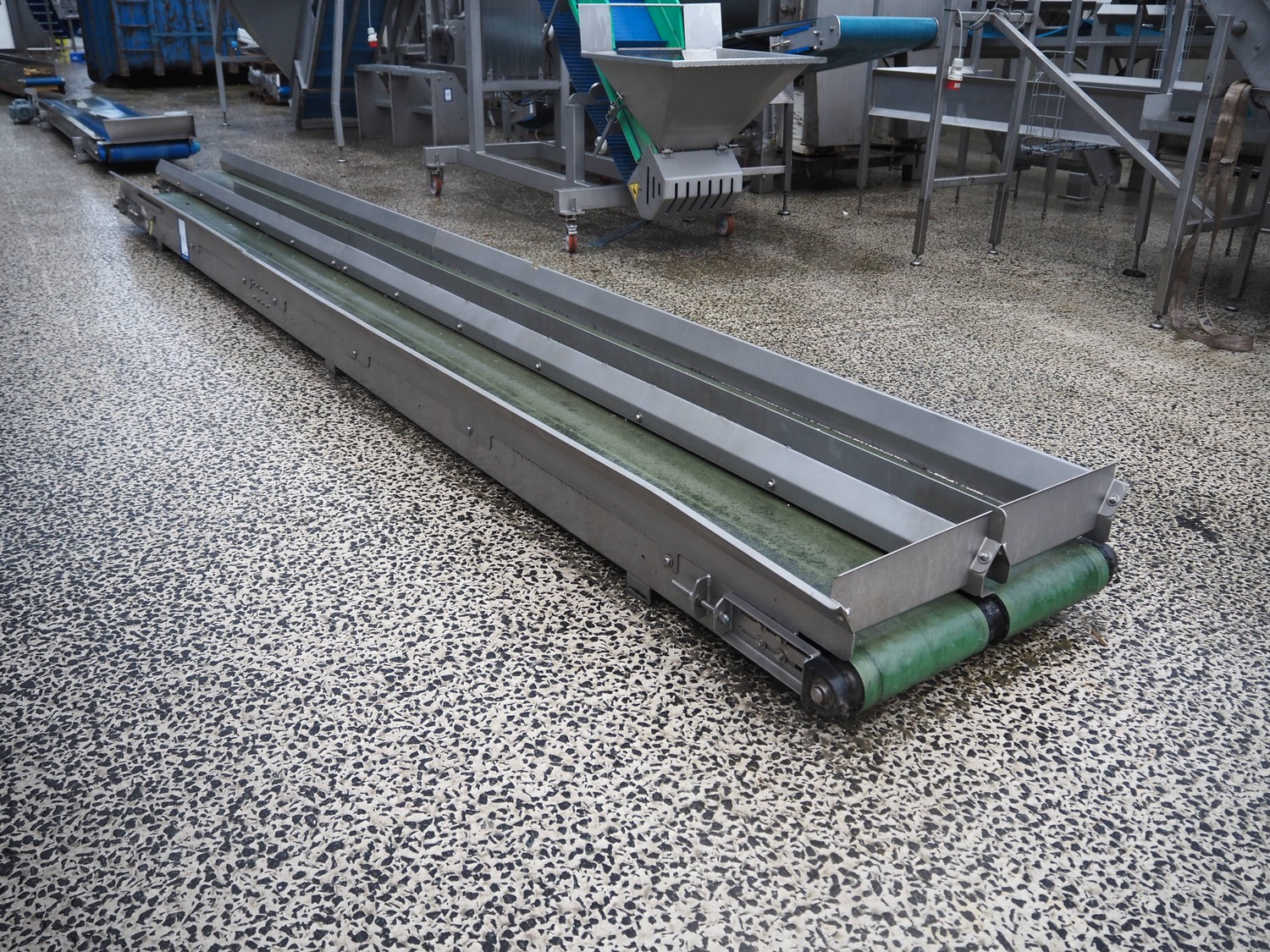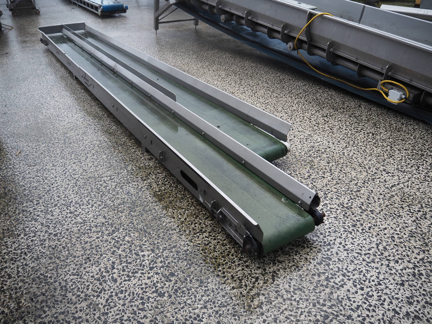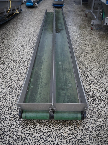 Double transport belt, plastic belt, belt width: (2x) 300 mm, total dimensions: 5800 mm x 770 mm x 240 mm.