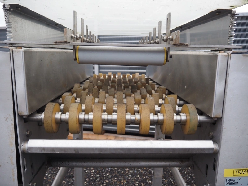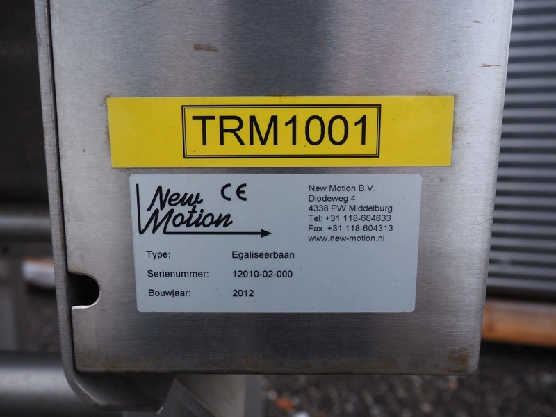 New Motion levelling belt, serial number: 12010-02-000, year of construction: 2012, clearance: 360 mm x 200 mm, plastic rollers, roller width: 230 mm, total dimensions: 1000 mm x 820 mm x 1470 mm.