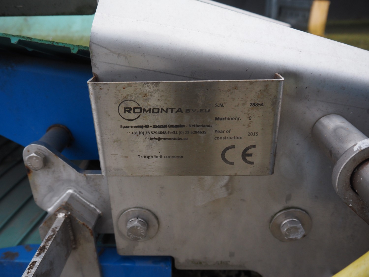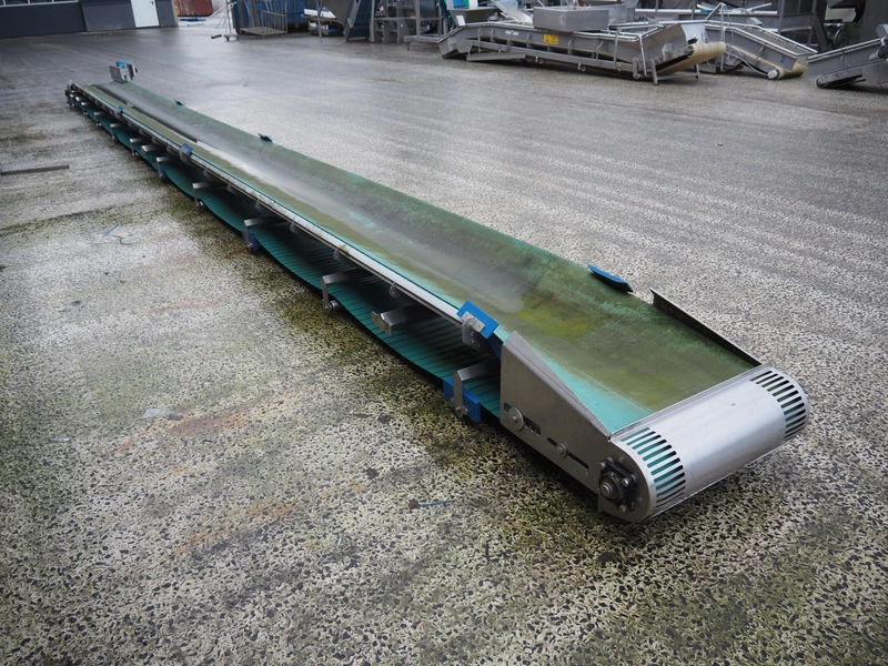 Romonta B.V. transport belt, serial number: 28854, year of construction: 2015, s/s frame, plastic belt, belt width: 600 mm, total dimensions: 11200 mm x 900 mm x 600 mm.