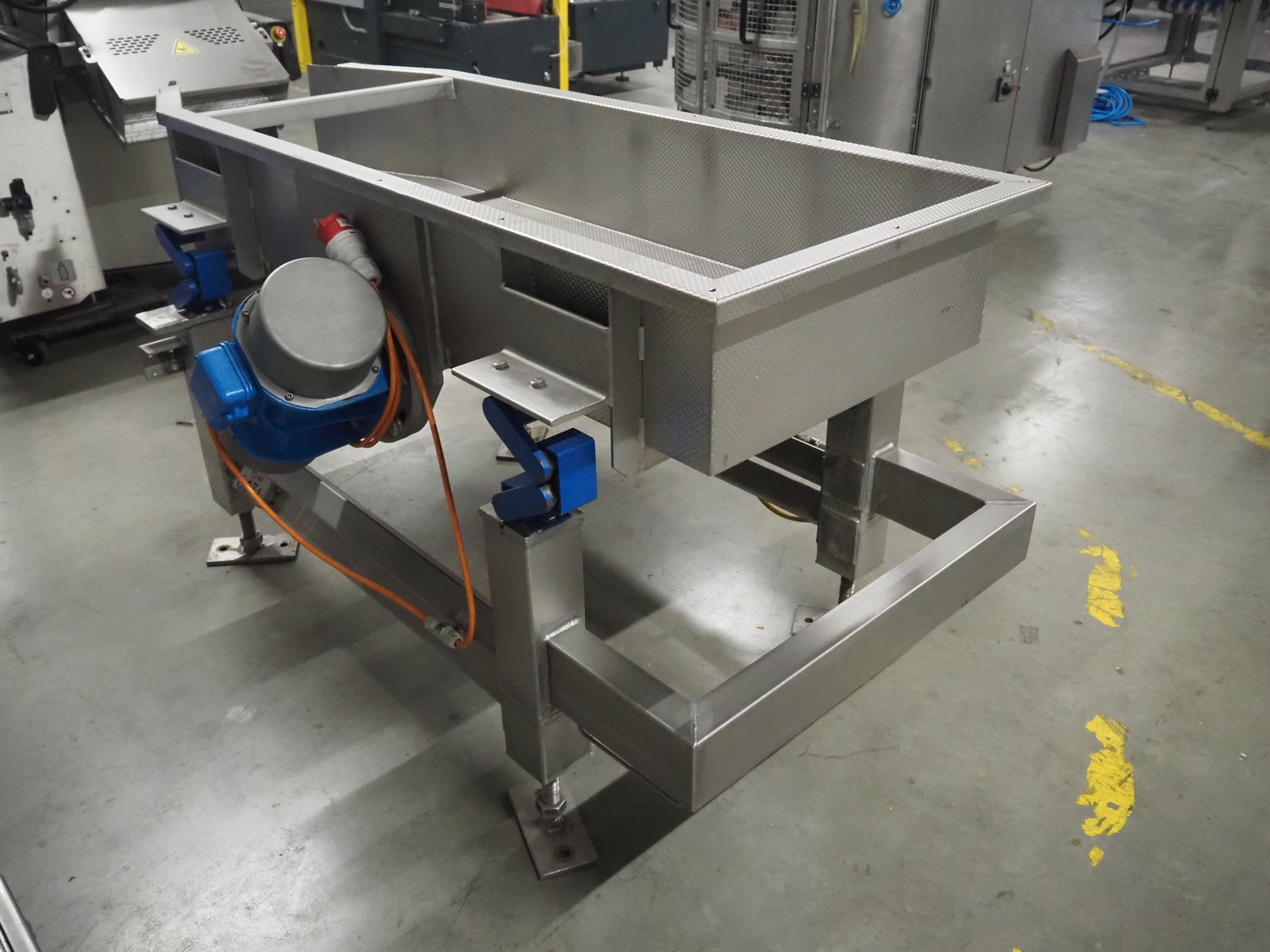 Vibrating gutter, gutter width: 600 mm, total dimensions: 1950 mm x 1250 mm x 1030 mm.