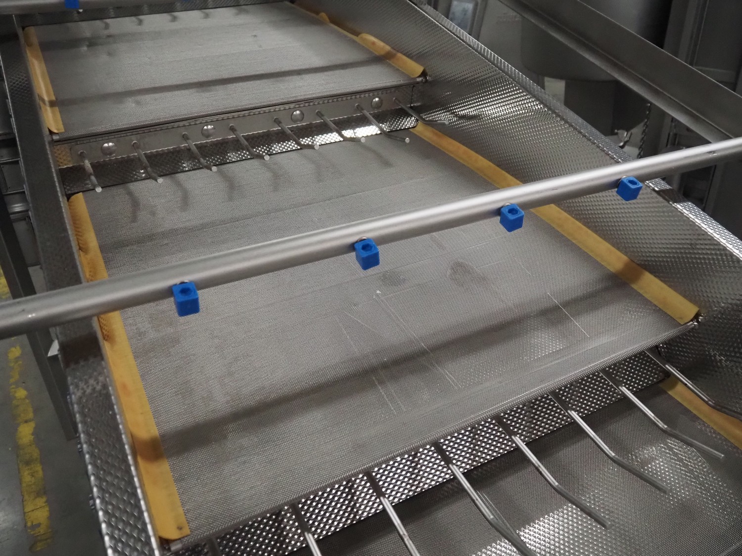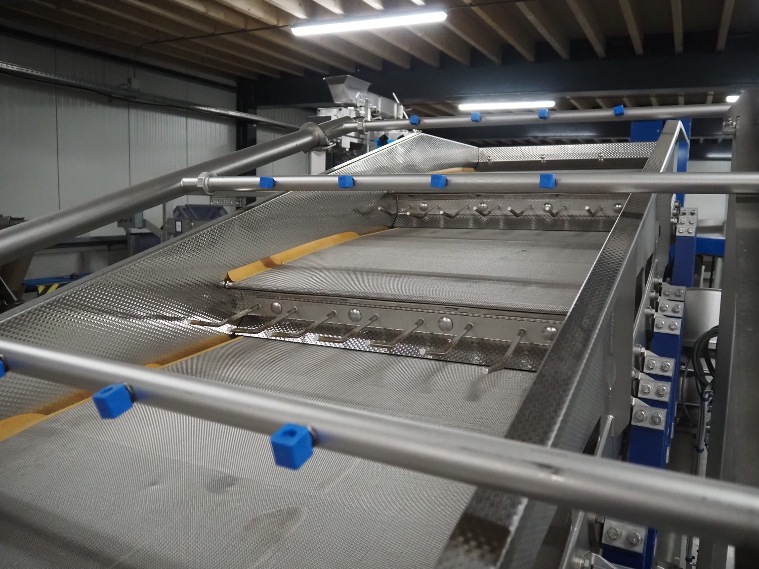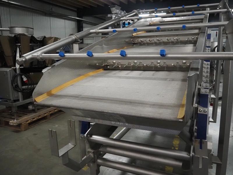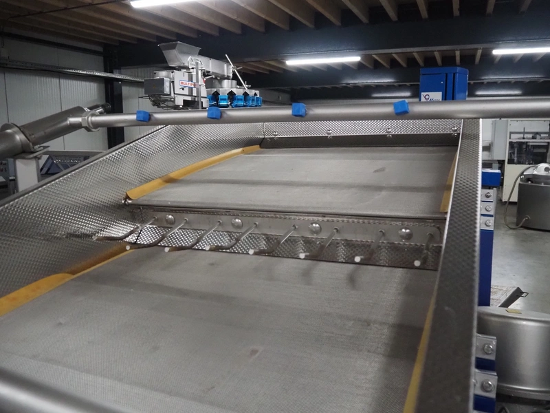 Foodeq s/s vibrating gutter with sieve, type: TTR800/3200, number: 17194, year of construction: 2018, gutter width: 800 mm, sieve: 1 mm, total dimensions: 3200 mm x 1400 mm x 2050 mm.
